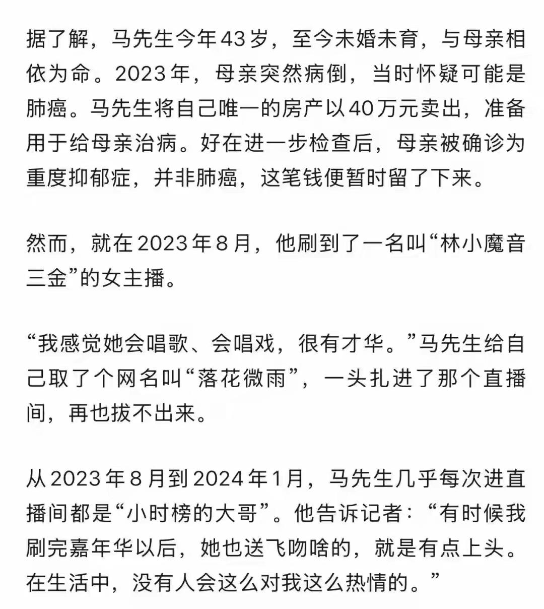 一声"大爷"迷心智!43岁男子卖房救母40万,竟打赏主播22.5万,后悔到狂扇自己