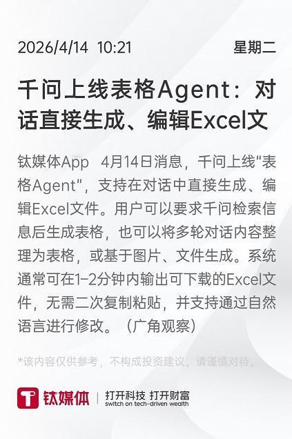 千问之前已经用一句话办事让很多人尝到了甜头,今天表格Agent又补齐了结构化数据生成这块拼图。按照这个趋势来看,千问在办公场景仅仅是小试牛刀,AI改变传统软件使用方式的这场大戏,精彩的可能还在后面。