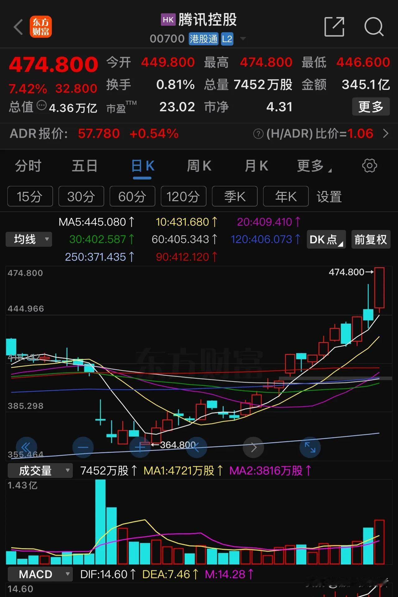 春节前猜腾讯2025年不出意外股价会上500港币,没想到春节后一个月不到的时间股价就要到了,看来情绪上来了谁都拦不住,一个劲的往上冲,涨的太快感觉不是什么好事,如果短时间股价上冲500港币,我可能会卖出一部分。