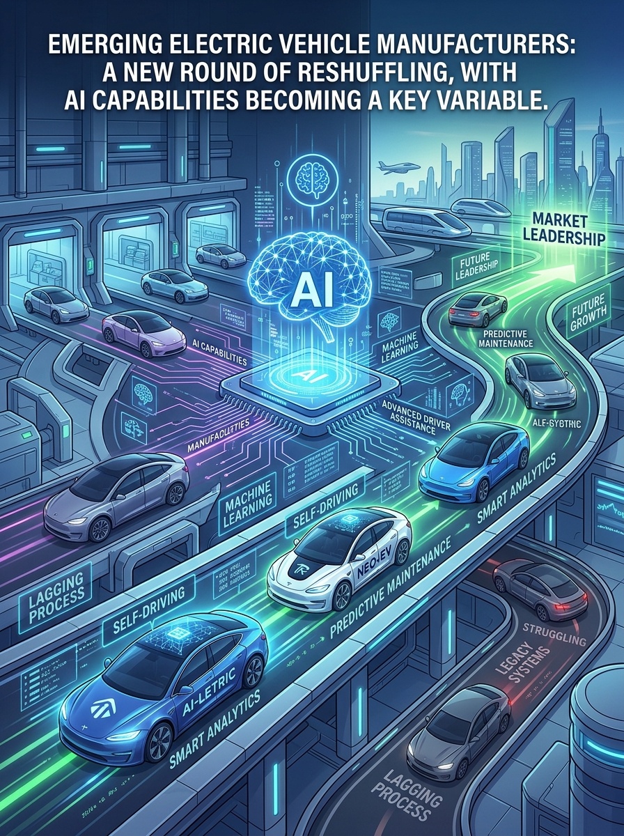 新势力分化加剧,AI能力决定生死 造车新势力正在进入新一轮洗牌期,AI能力成为关键变量。最近的行业信号显示:头部企业(理想、小鹏)开始拉开差距,而尾部玩家生存压力明显上升,多家二线新势力寻求并购或转型。 📊 从拼销量到拼技术 早期比拼交付量,现在比拼的是自动驾驶、AI交互、具身智能等核心能力。销量只是结果,技术才是根本。 - 小鹏将2026年定为“物理AI商业化落地关键年”,图灵芯片+第二代VLA大模型实现1500TOPS算力下探至2万美元级别车型 - 理想定义2026年为“具身智能企业进化年”,将汽车和机器人定义为统一的“硅基生命”硬件 🤖 第二增长曲线浮现 越来越多车企布局机器人、AI助手等新业务,原因很现实:单靠卖车难支撑长期增长。 - 小鹏:人形机器人、飞行汽车、Robotaxi三大AI业务2026年底全部量产 - 理想:成立独立团队开发人形机器人,作为“第二增长极” - 蔚来:布局“汽车+能源+科技”全生态,AI成为贯穿各业务的核心引擎 🧠 AI成为估值锚点 资本市场正在重新定价车企——你是“制造公司”,还是“AI科技公司”,估值差可达5-10倍。 小鹏汽车更名小鹏集团,强调向“全球物理AI科技公司”转型;理想汽车将AI研发投入占比提升至30%,均获得资本市场积极响应。 😂 一句话点评 未来车企分两种:一种叫车企,一种叫“会造车的AI公司”,后者市值可能是前者的10倍。 关键词:造车新势力、AI竞争、行业洗牌、具身智能大V聊车ai创造营