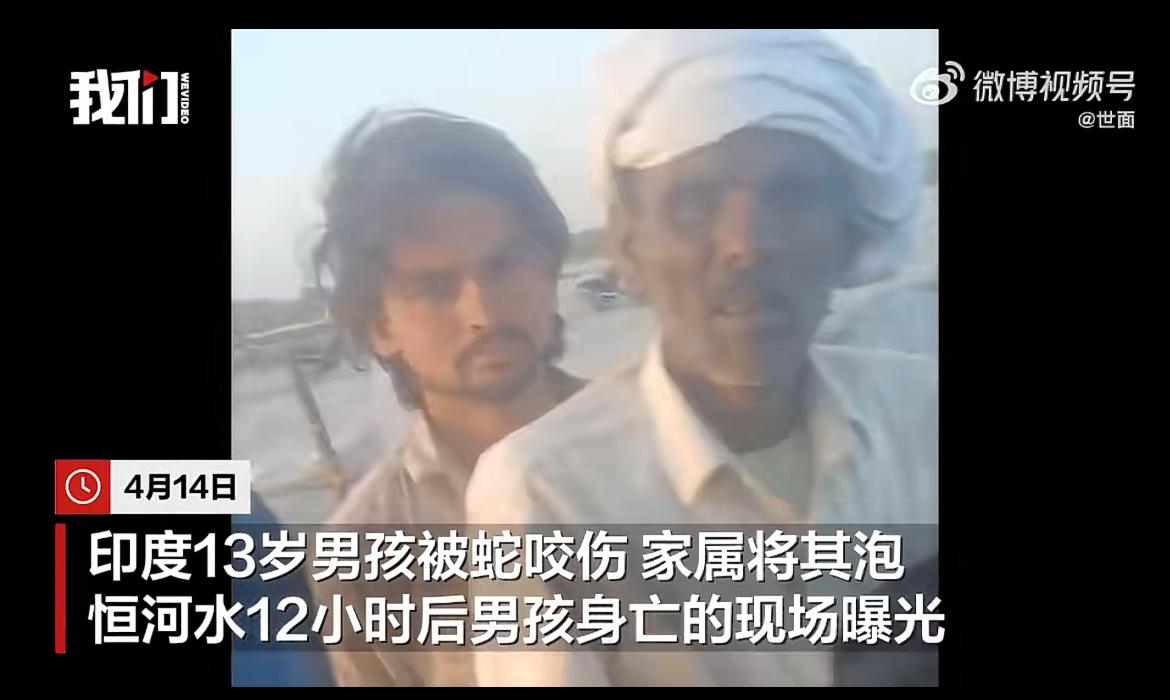 印度一13岁男孩被毒蛇咬伤,家人听信偏方,把他丢在恒河水里以为可以排毒,最终毒发身亡。事情发生于 4 月 9 日,在印度北方邦,一 13 岁男孩去野外割草,不小心被一条眼镜蛇咬伤,家人闻讯把他送到当地一个有名的巫医处治疗。巫医建议把男孩用竹竿绑起来,浸泡到附近的恒河水里面,因为恒河水可以解毒。