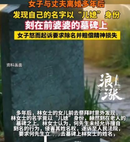 上海,一名女子离婚已整整30年,近日陪表姐扫墓时,偶然路过前婆婆的墓地,却意外发现墓碑上赫然刻着自己的名字,身份一栏还标注着“儿媳”。这一幕让女子怒火中烧,当即一纸诉状将前夫告上法庭,以侵犯姓名权为由,要求移除墓碑上的名字并赔偿精神损失。而前夫却辩解,刻名字是母亲的遗愿,母亲已去世20年,重刻墓碑会打扰逝者安宁。(文中人物均为化名)