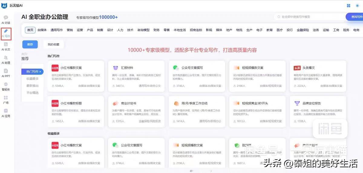 5、AI 写作模型:100000+专家级模型, 新媒体推文/小红书文案/官网内容轻松搞定