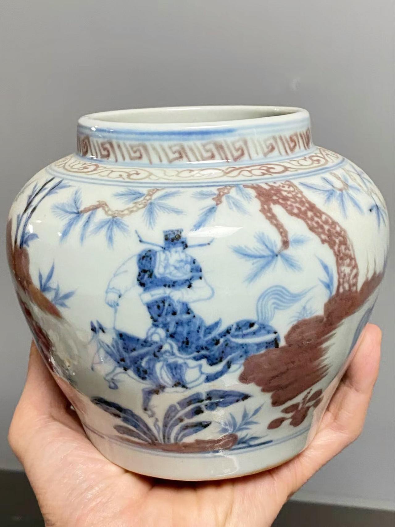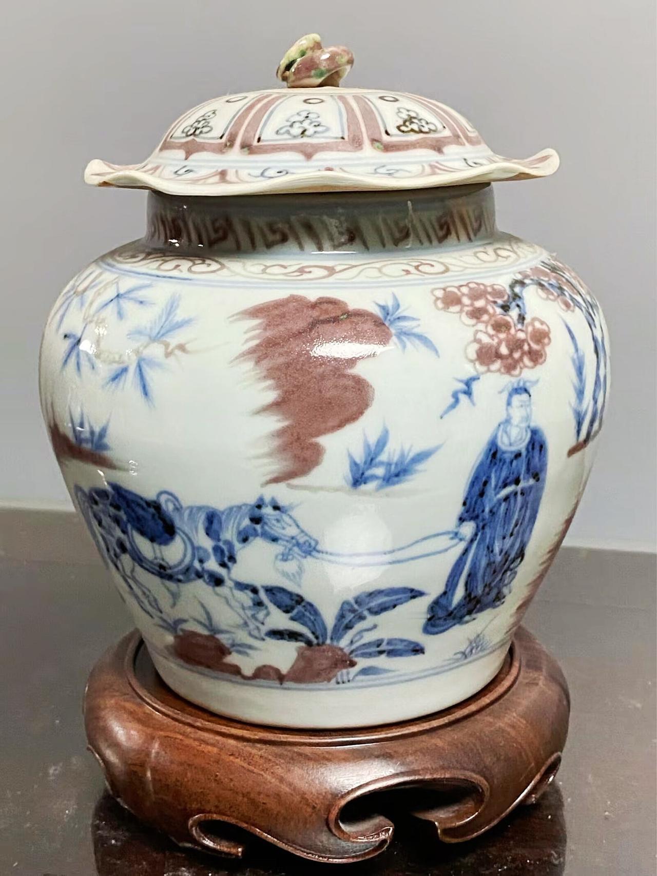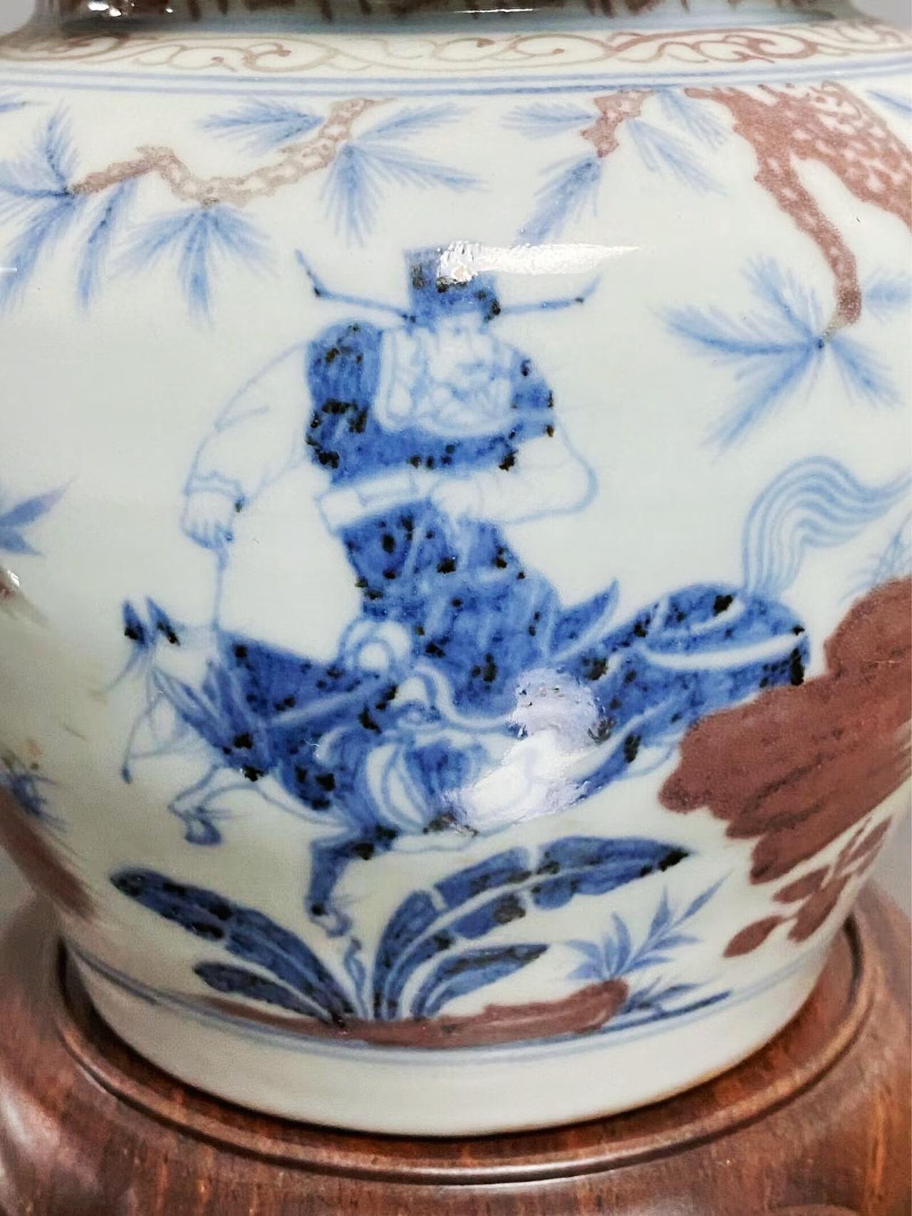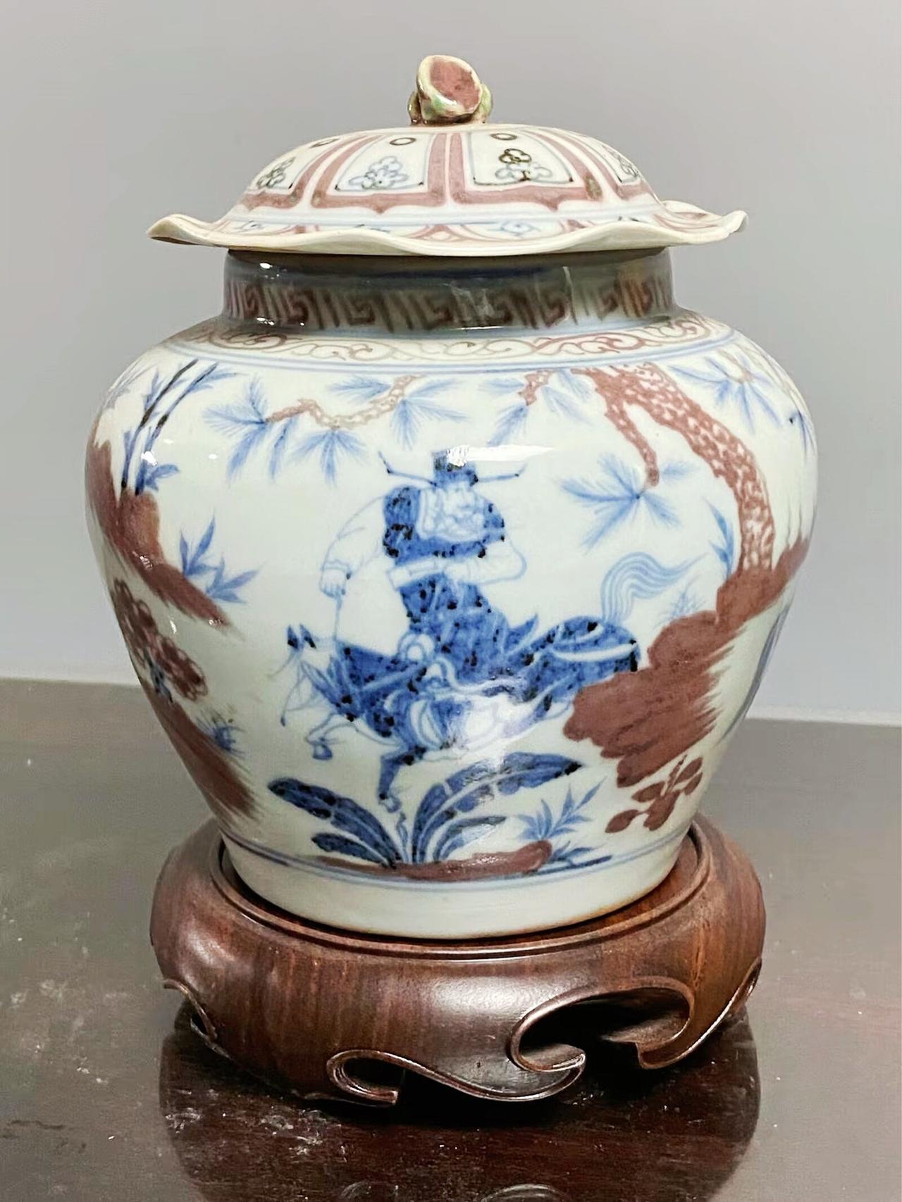 元代青花釉里红瓷器欣赏,萧何月下追韩信小荷叶盖罐,三顾茅庐玉壶春瓶!元青花 瓷器 收藏 萧何月下追韩信
