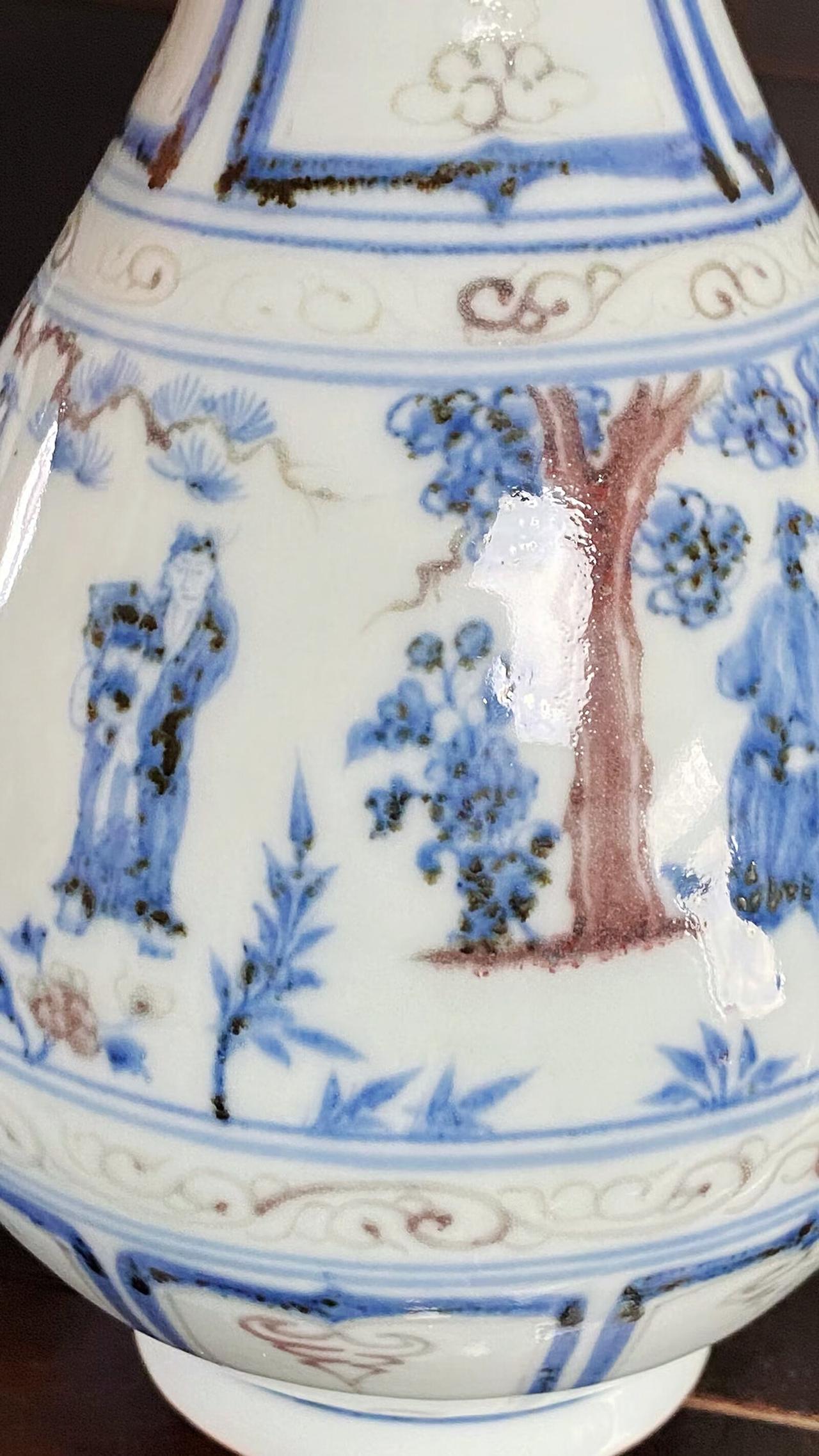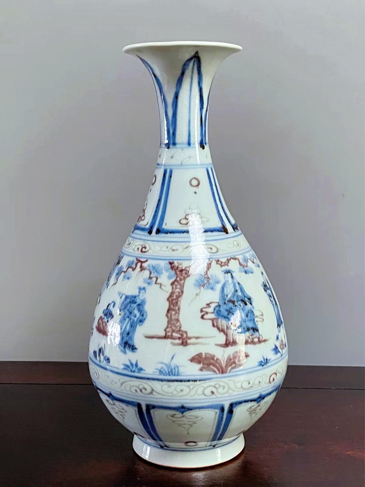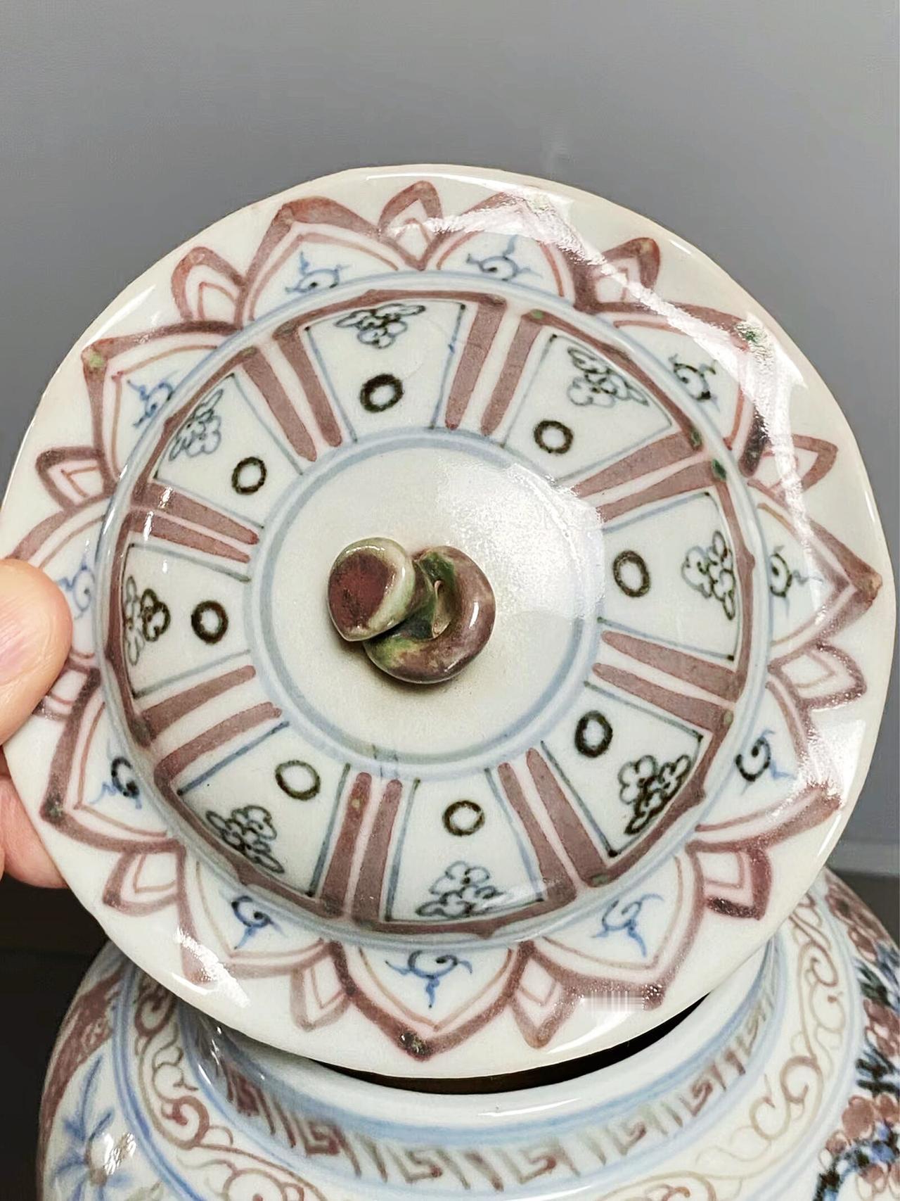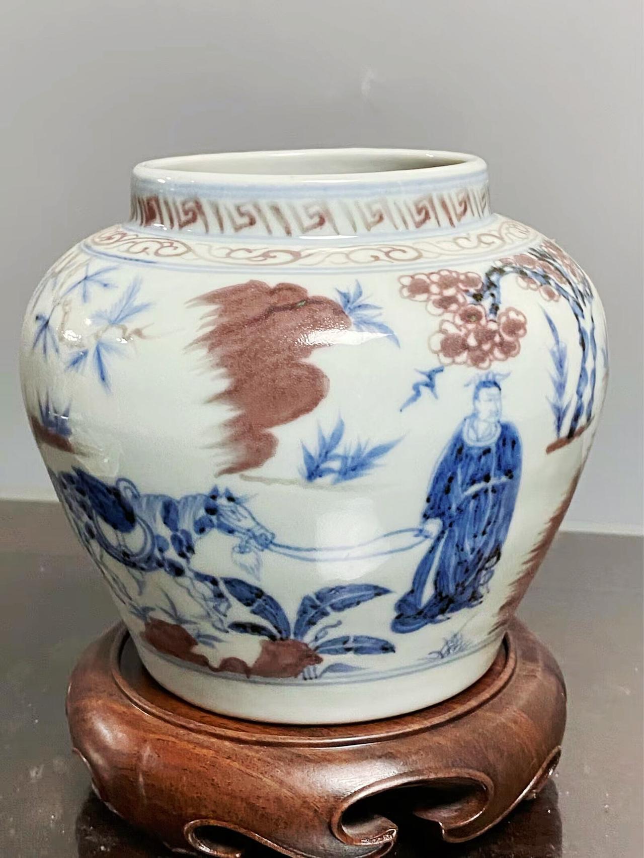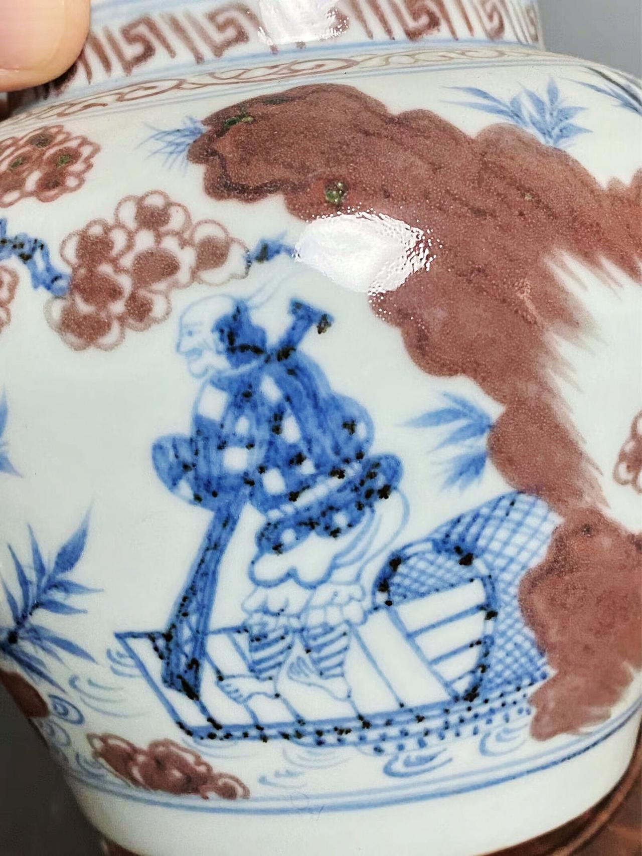 元代青花釉里红瓷器欣赏,萧何月下追韩信小荷叶盖罐,三顾茅庐玉壶春瓶!元青花 瓷器 收藏 萧何月下追韩信