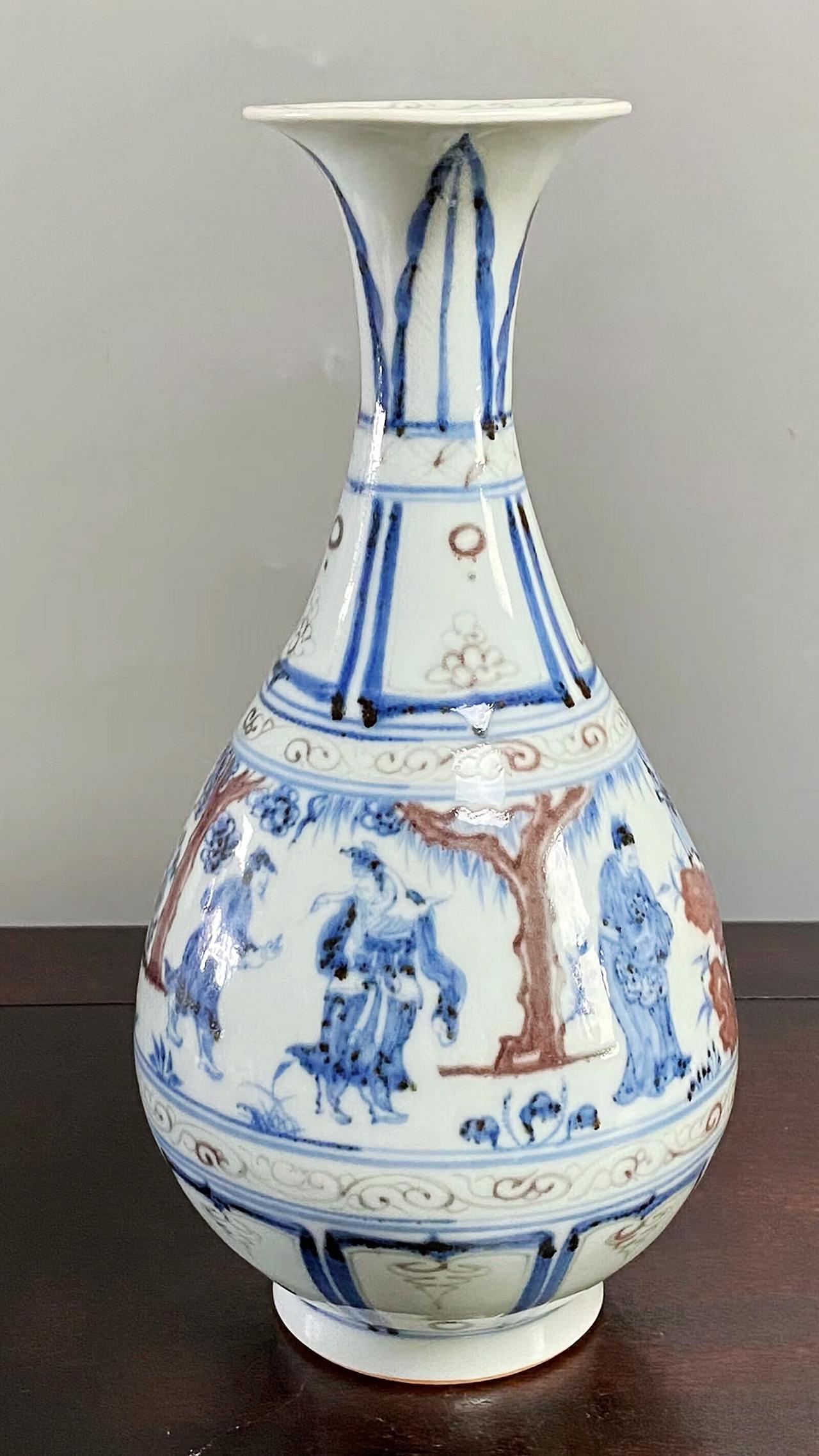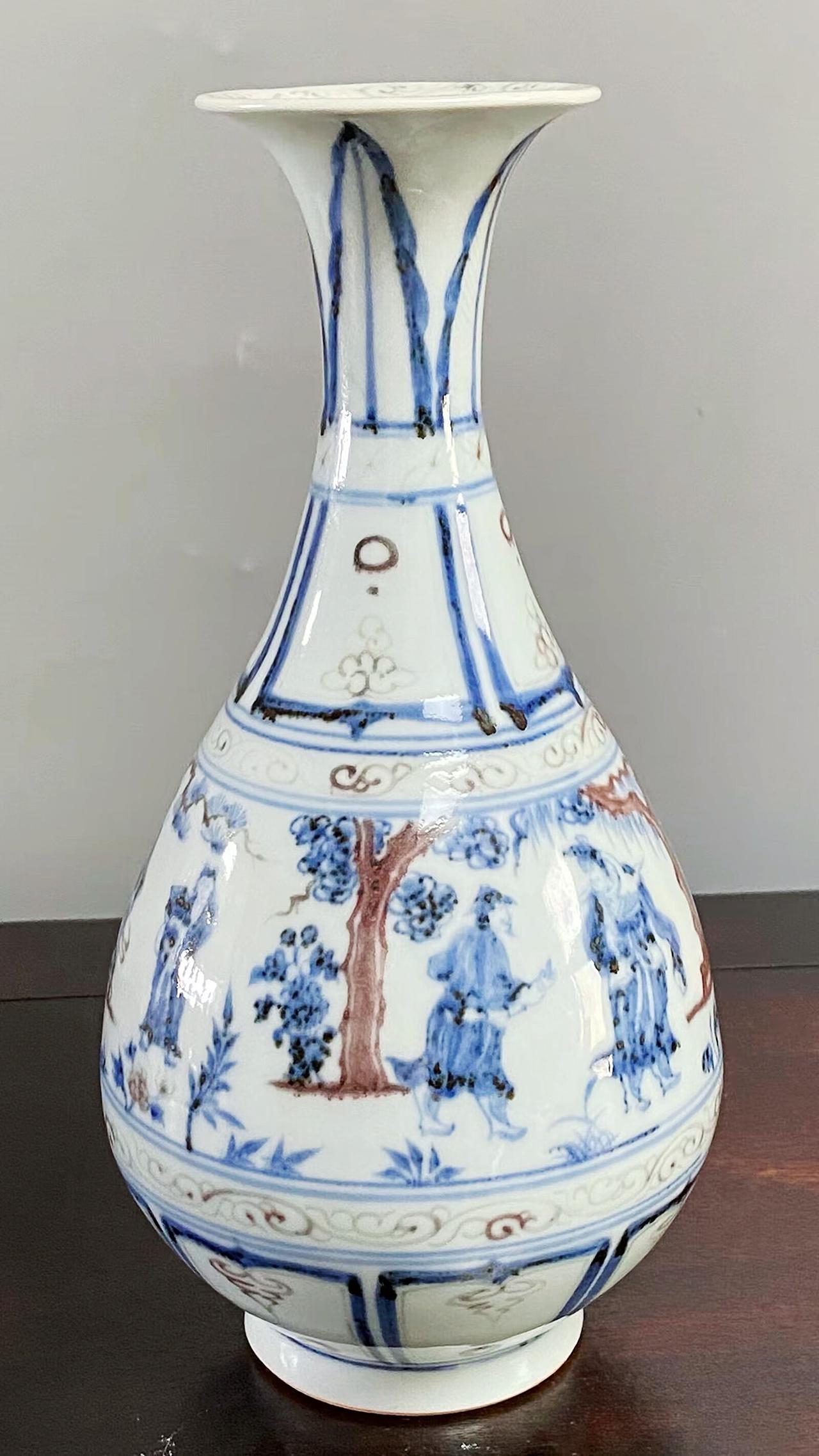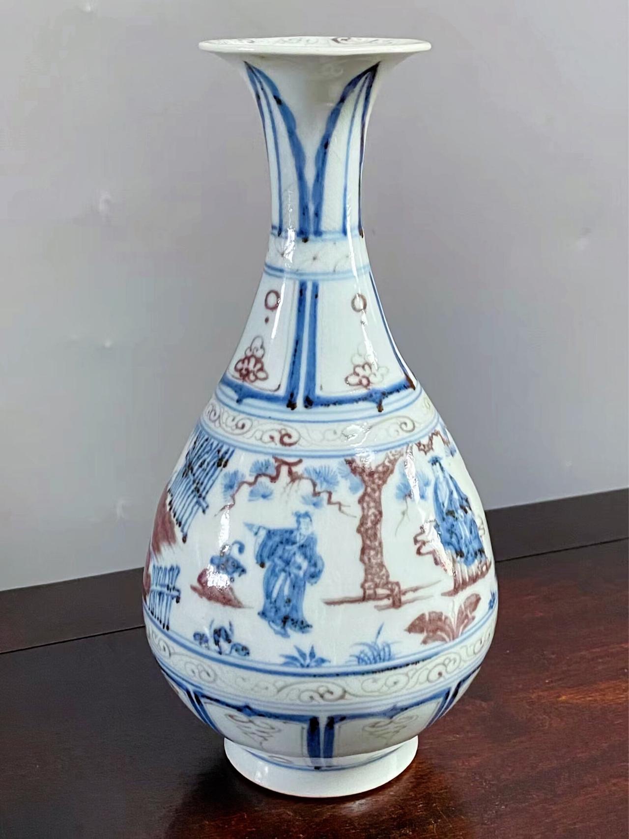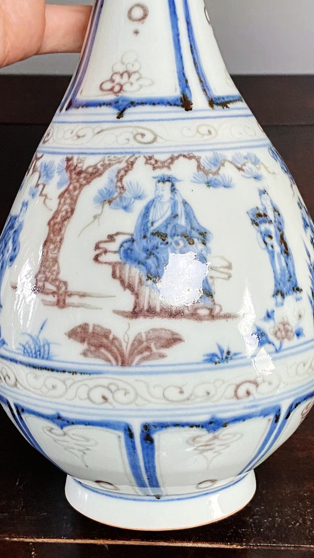 元代青花釉里红瓷器欣赏,萧何月下追韩信小荷叶盖罐,三顾茅庐玉壶春瓶!元青花 瓷器 收藏 萧何月下追韩信