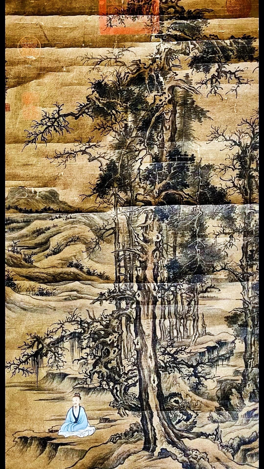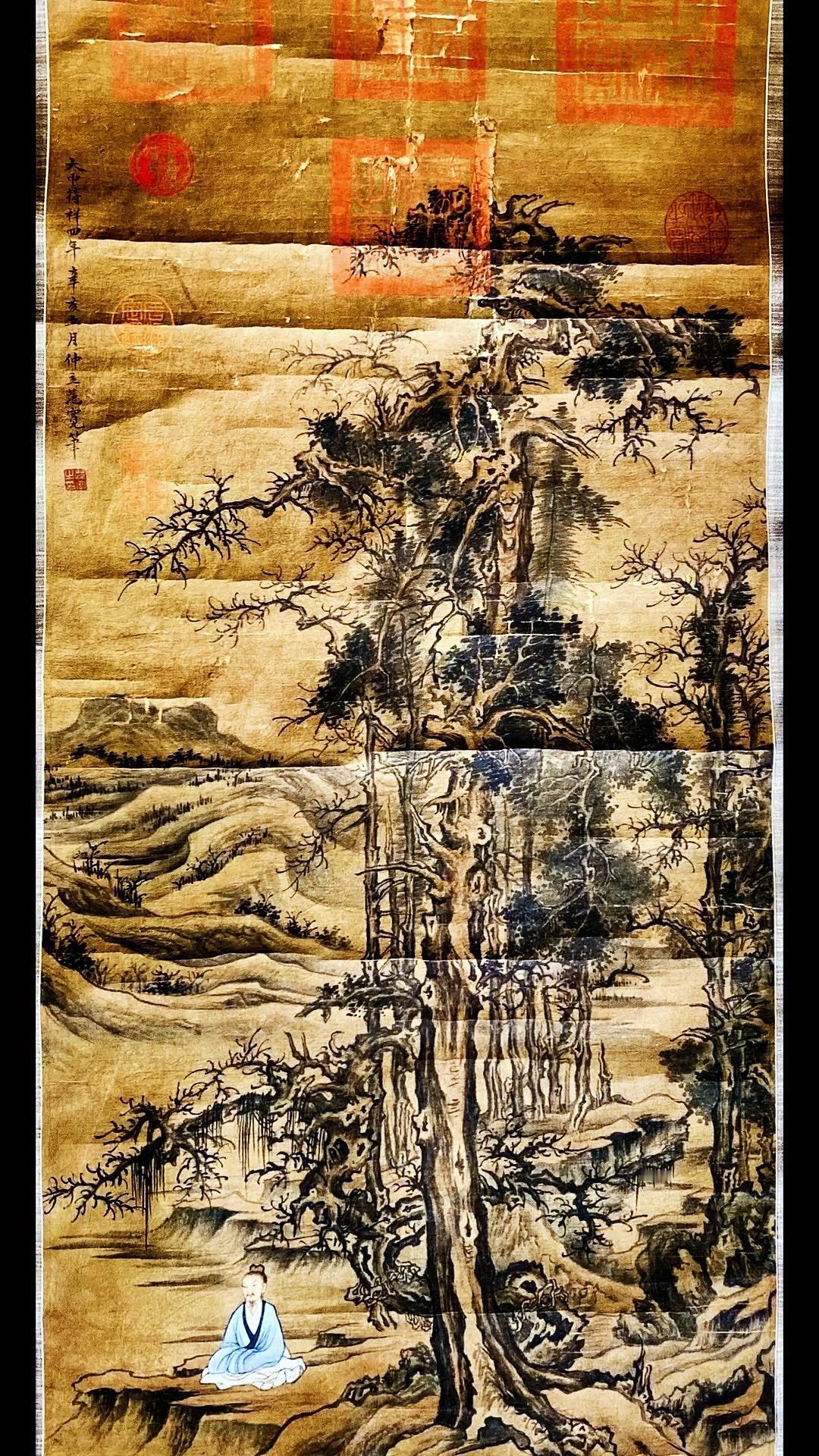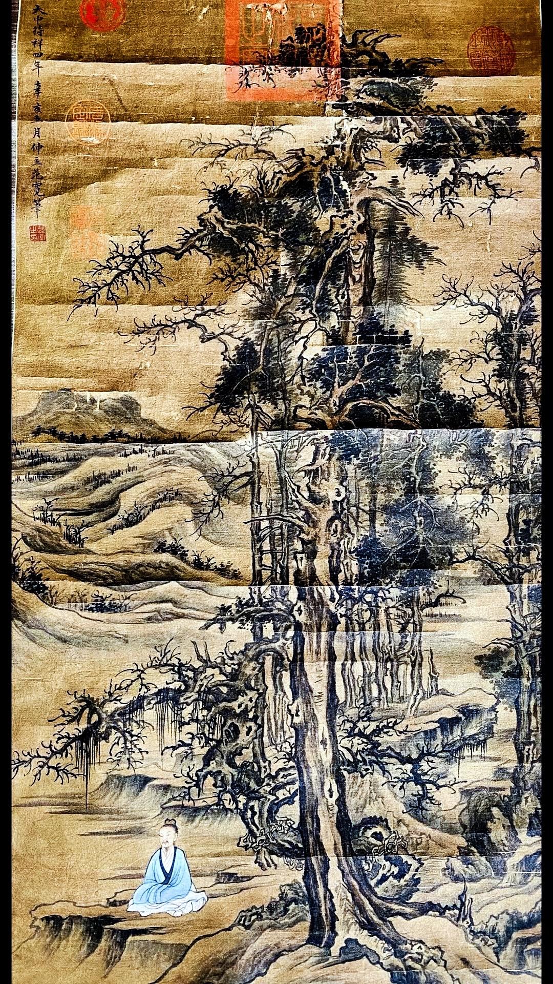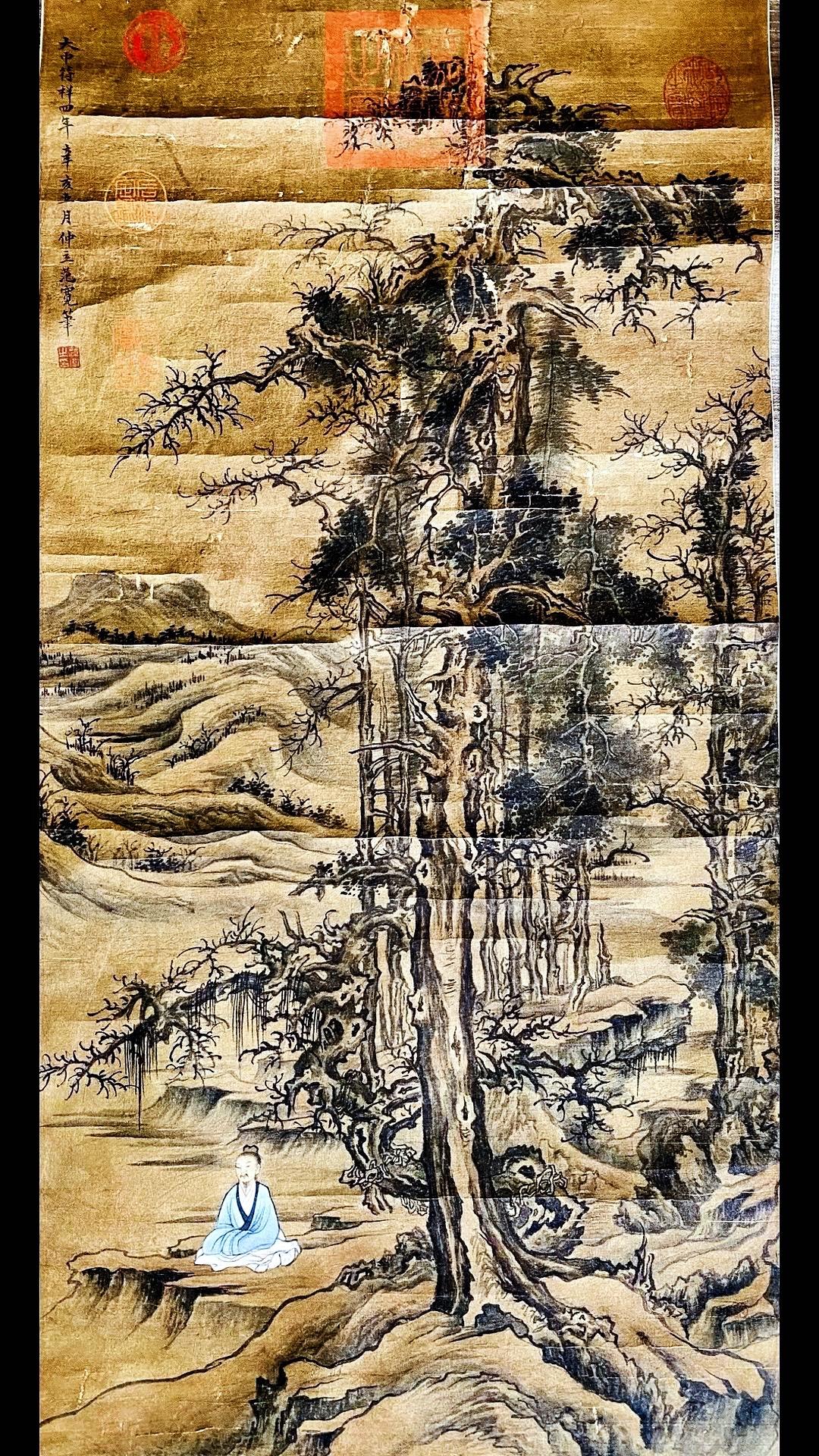 北宋范宽字画欣赏~“修仙图”,画绢年份检测公元961年、此画作系清宫旧藏老字画!