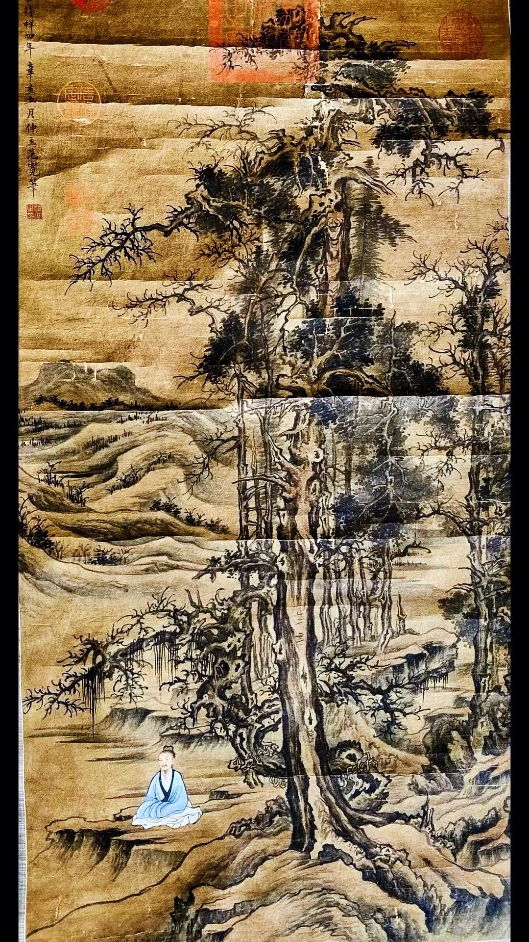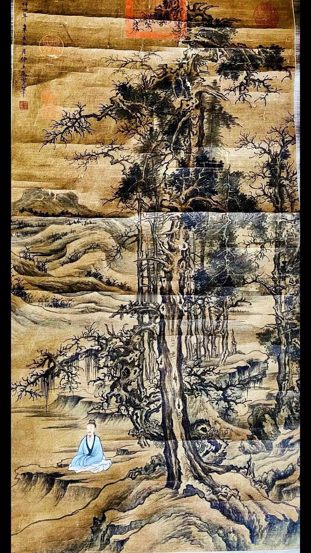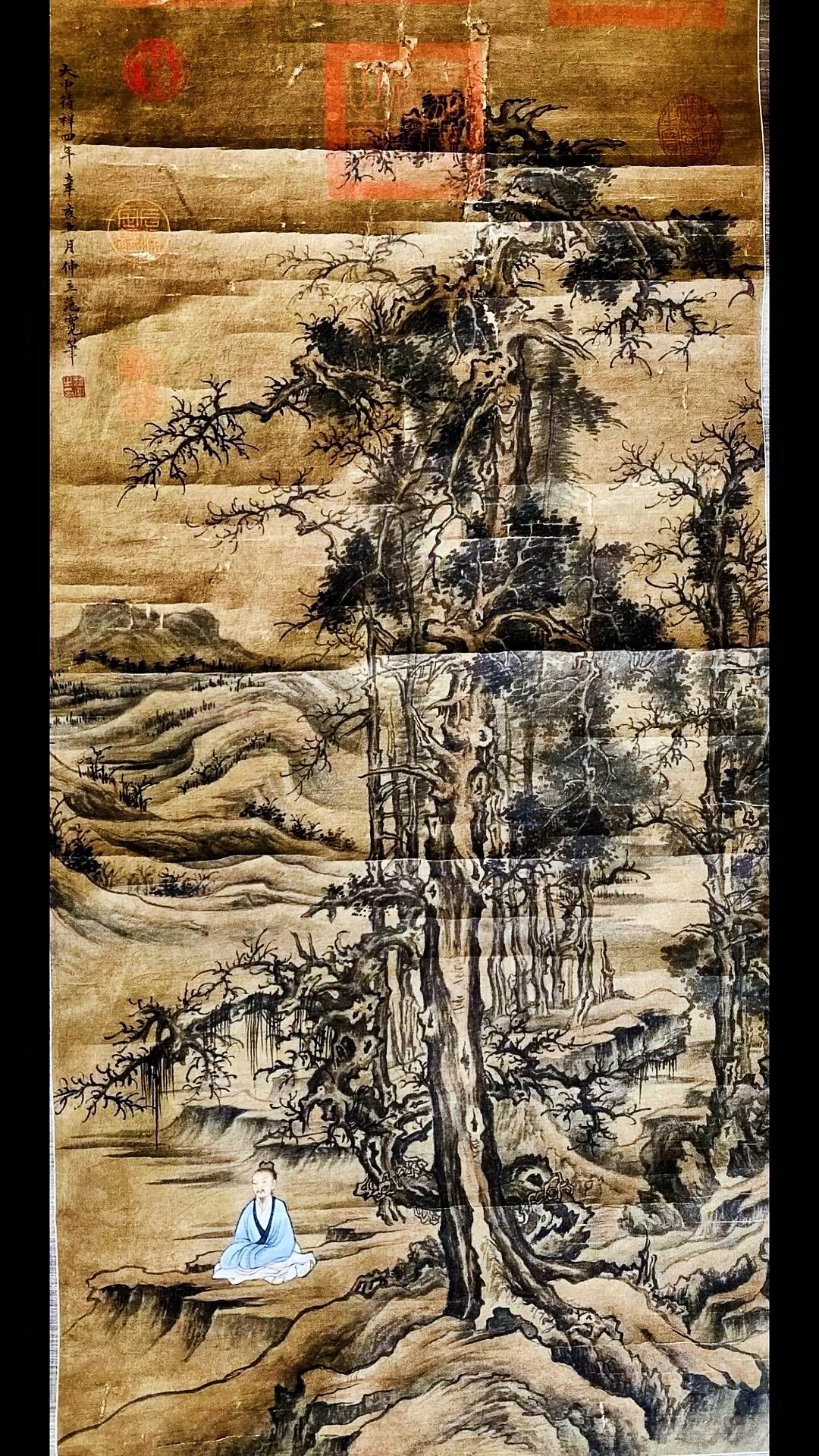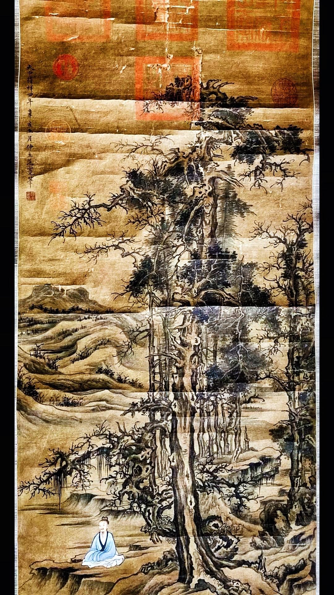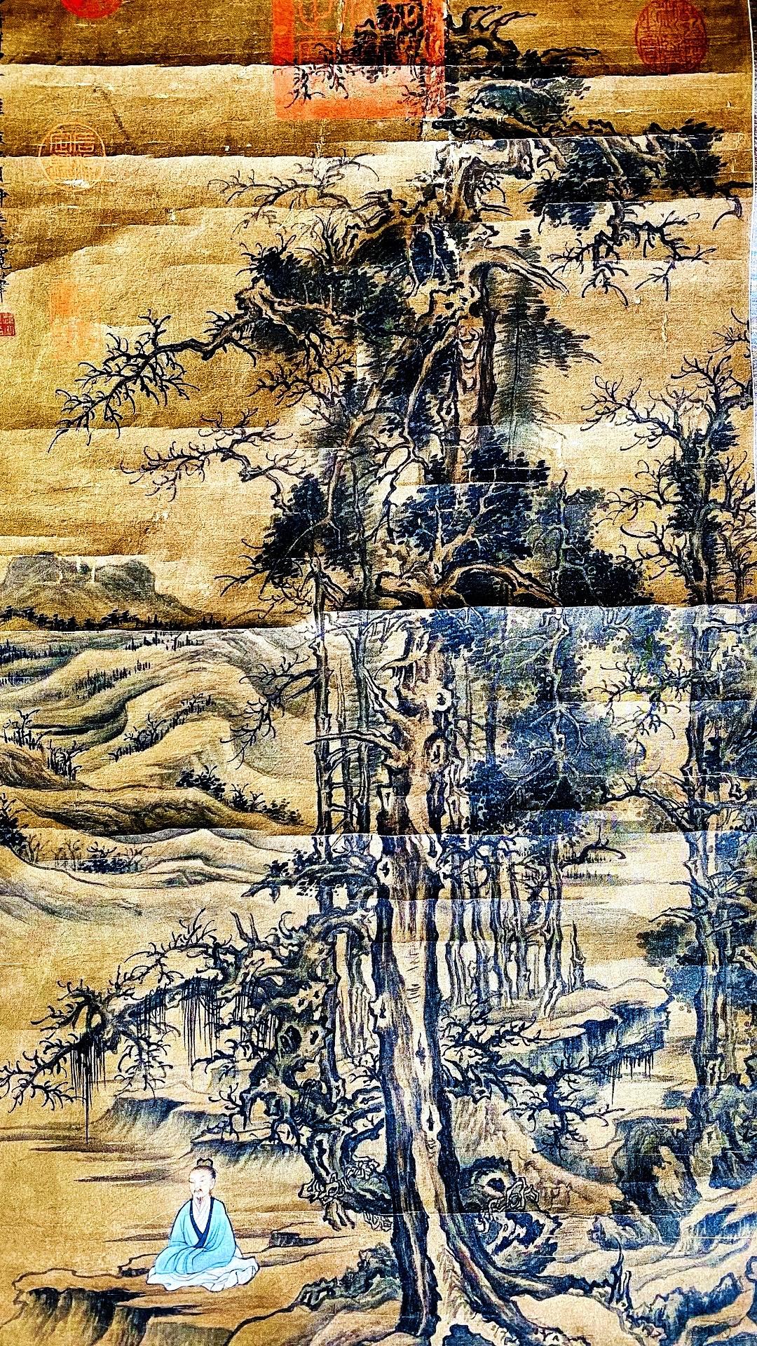 北宋范宽字画欣赏~“修仙图”,画绢年份检测公元961年、此画作系清宫旧藏老字画!