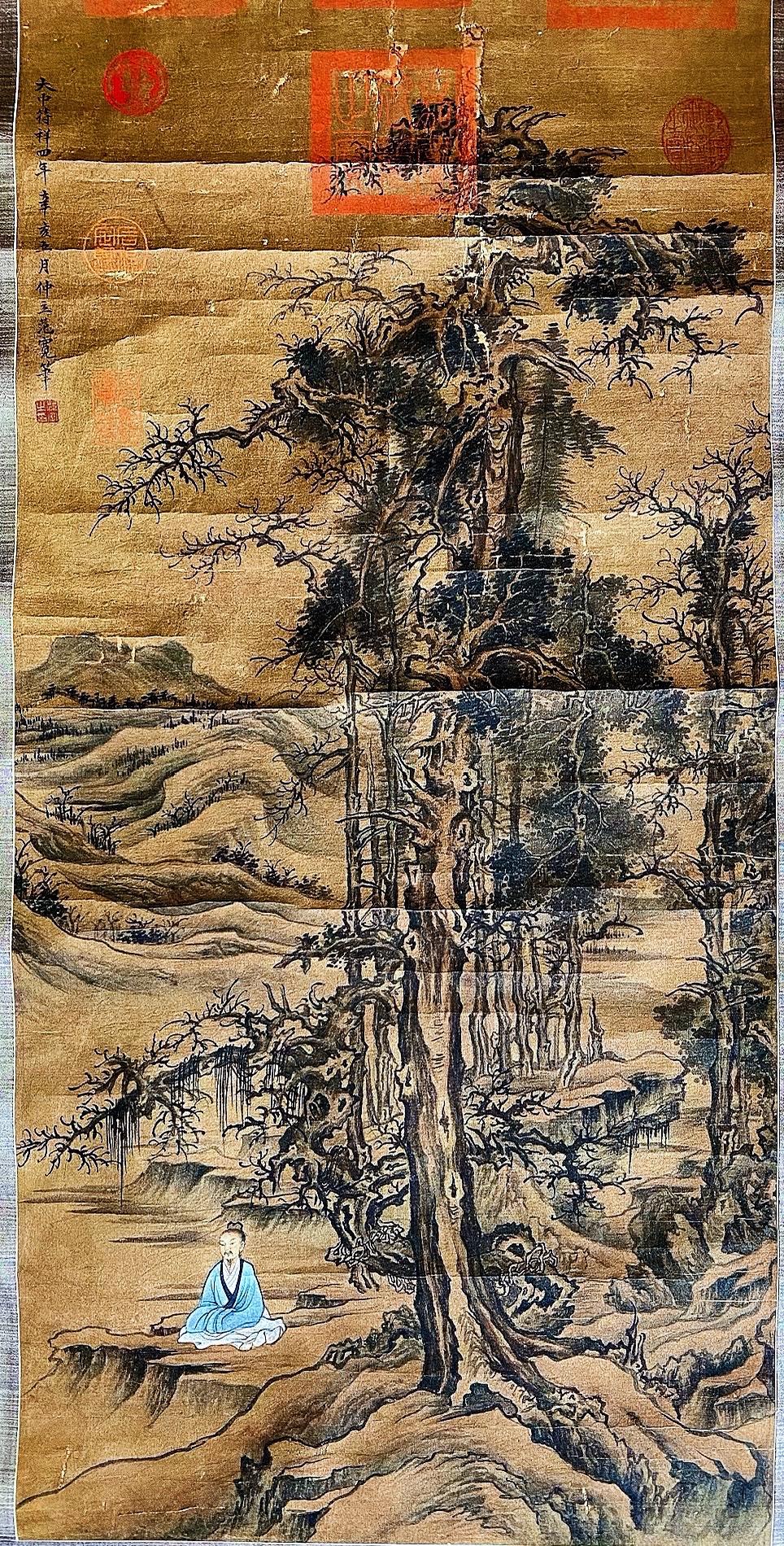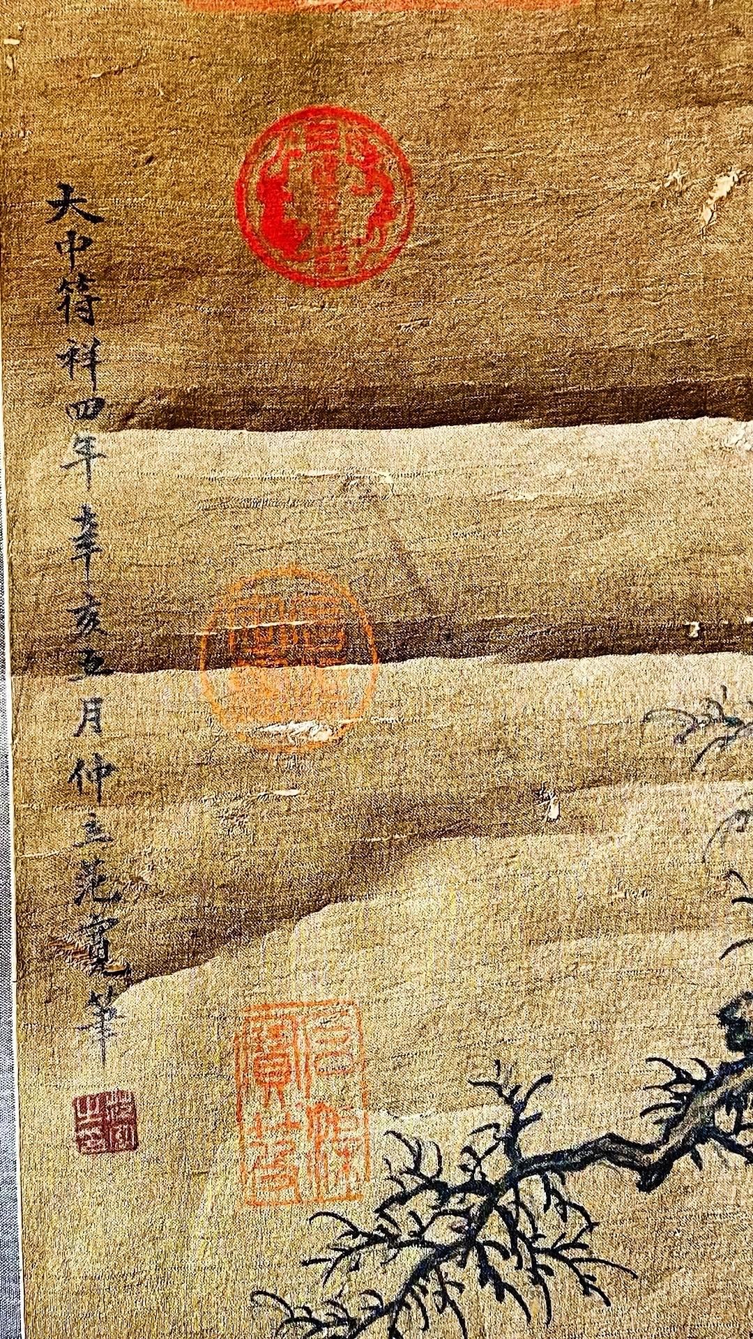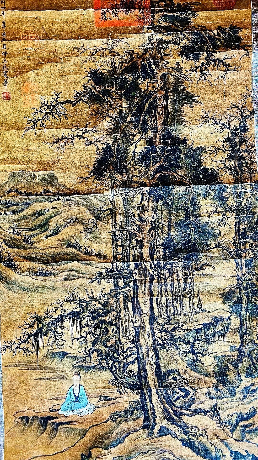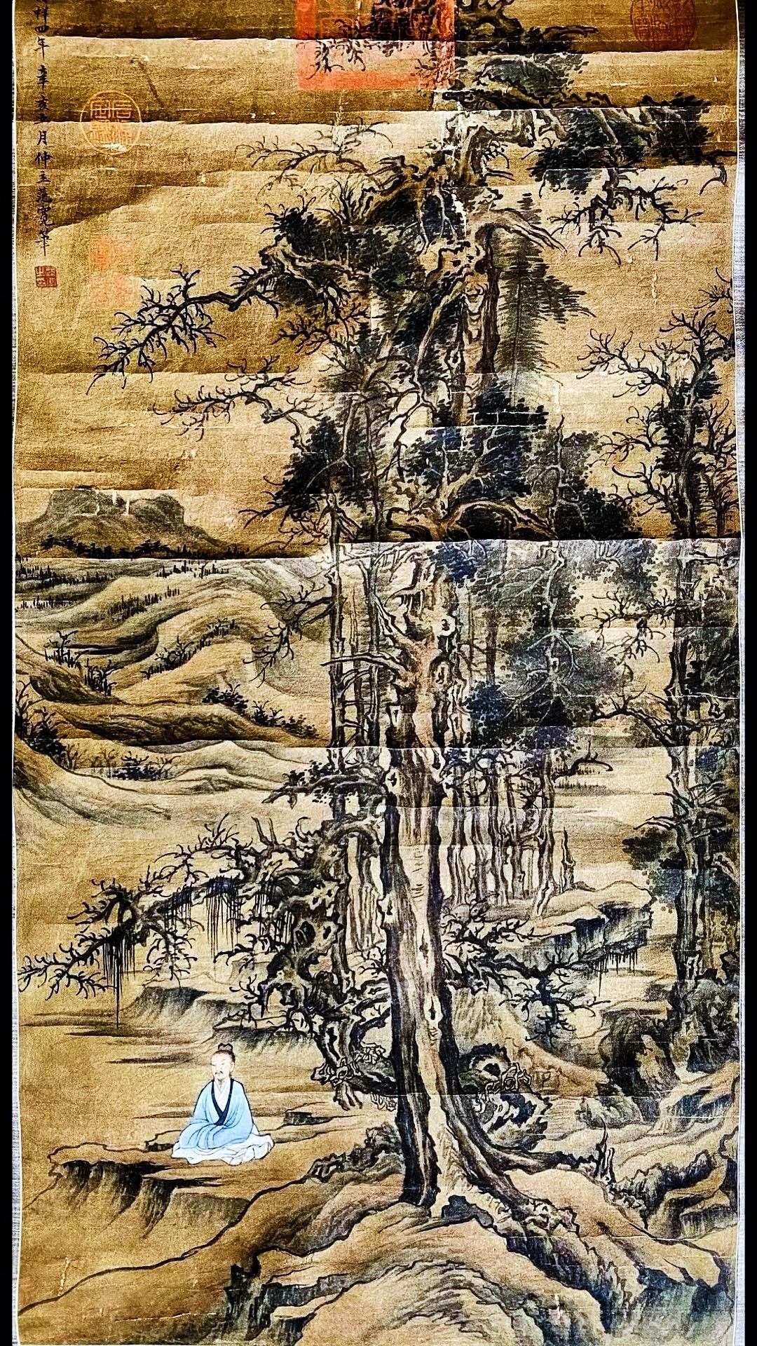 北宋范宽字画欣赏~“修仙图”,画绢年份检测公元961年、此画作系清宫旧藏老字画!