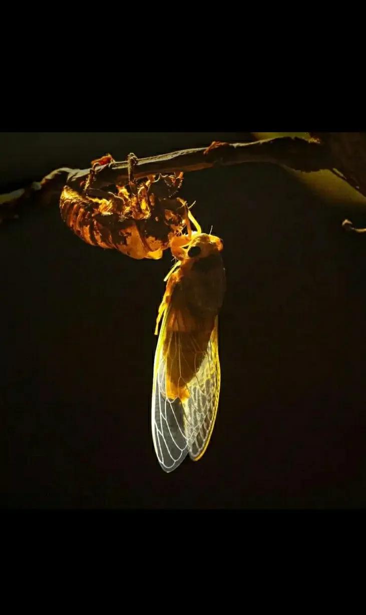 从成虫产卵到掉入泥土,经历漫长的三年;从泥土中奋力爬出,躲过人们的追捕能成功蜕变的又有多少;一旦蜕变,就在枝头知了知了的叫唱;仿佛向人们诉说着它的那些不易!