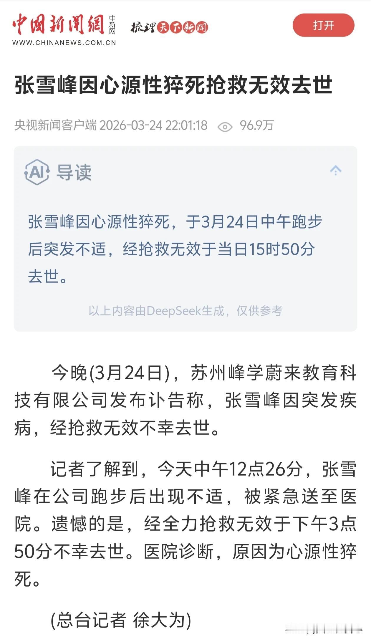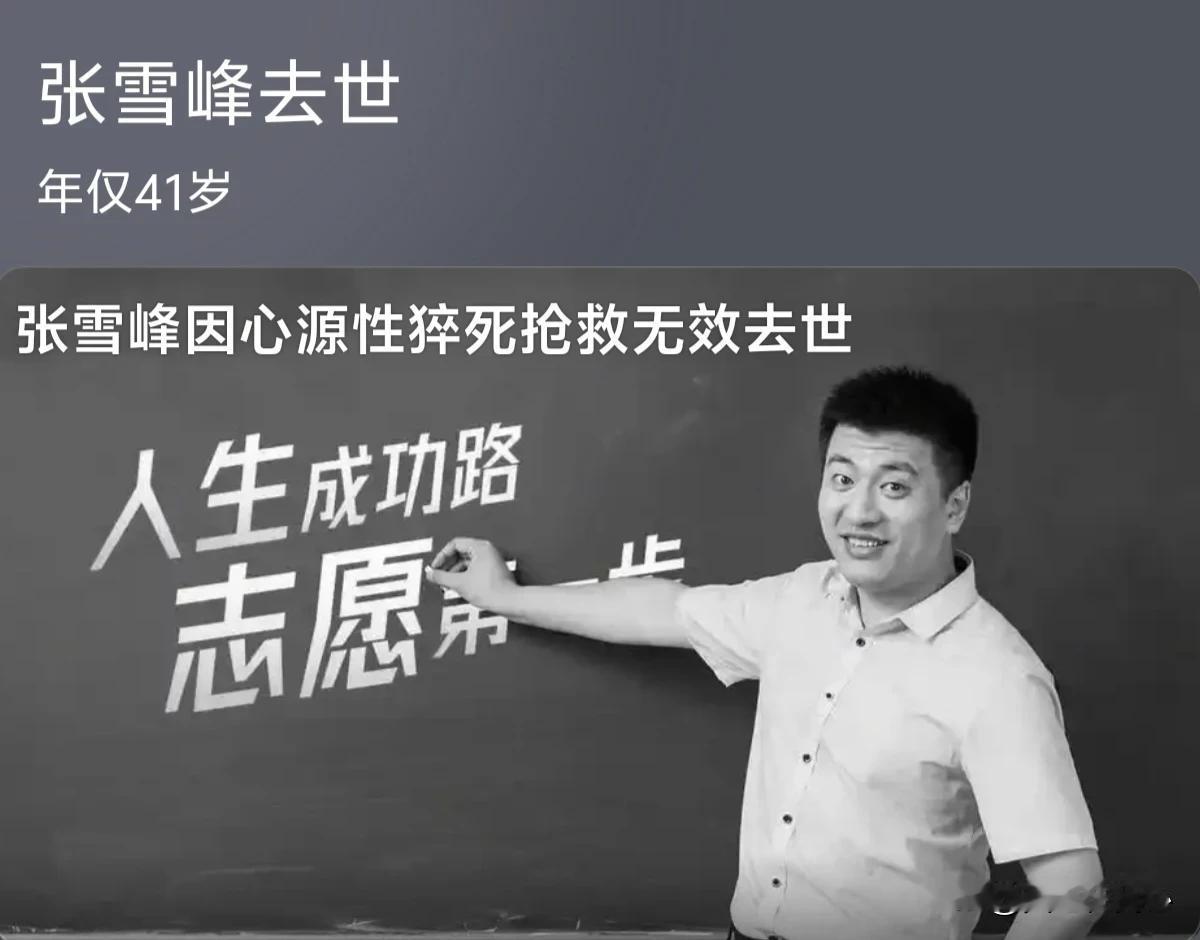 20260年3月24日,万千学子高考志愿填报参考老师张雪峰,在跑步锻炼时引发心脏衰竭,经送医抢救无效离世……
