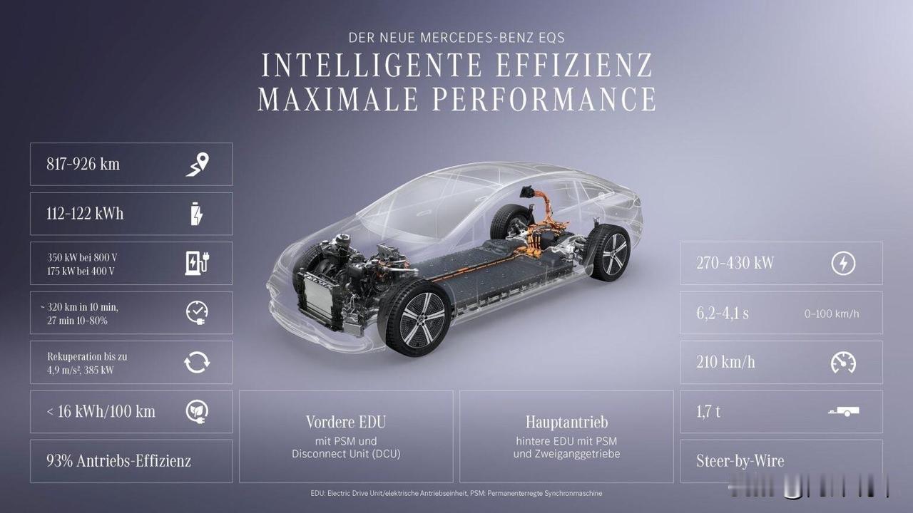 奔驰也成为首个在量产轿车中搭载线控转向技术的德国品牌。动力部分换装了奔驰自主研发的新一代电驱动单元,后轴配备两档变速箱。