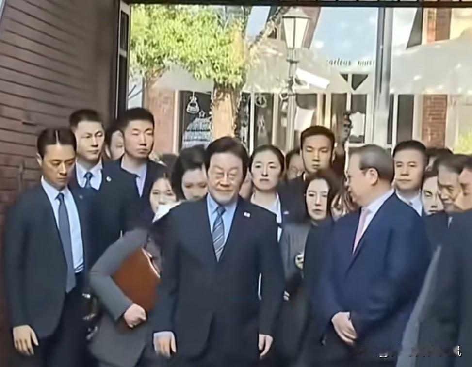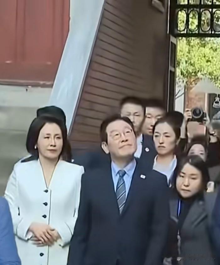 从画面看,李在明夫妇身旁的贴身女保镖,着装干练正式,神情专注严肃,身姿挺拔,融入随行队伍中,展现出专业、警觉的气质。