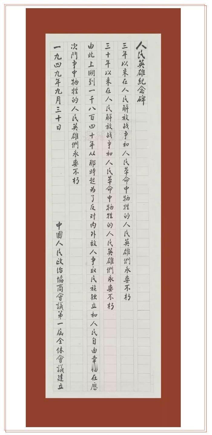 人民英雄纪念碑上镌刻是周恩来手书,字迹清晰漂亮。