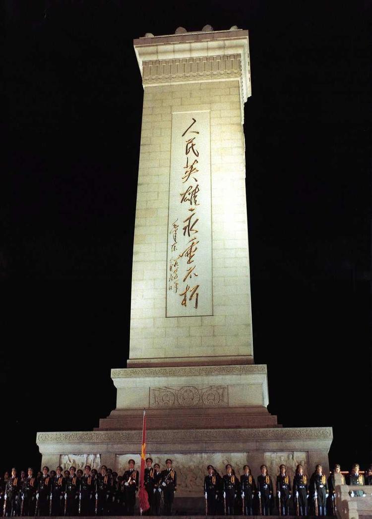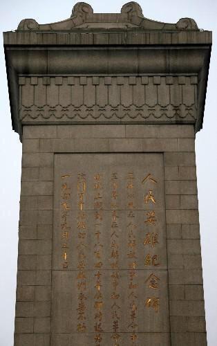 北京天安门广场中心人民英雄纪念碑,"人民英雄永垂不朽.是毛泽东题写。 人民英雄