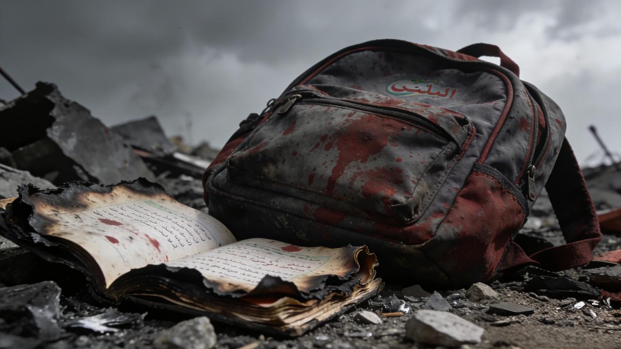 丙午年孟春,波斯湾畔,米纳卜城,一女子小学,忽遭天外飞弹,轰然成墟。残垣断壁间,一染血书包静静横陈,焦黑课本散落满地,墨字被血浸、被火焚,触目皆是童稚亡魂。百六十余名豆蔻女童,转瞬化为枯骨,未及辞亲,未及言志,未及看尽人间春色,便葬身于美以合谋的铁火之下。