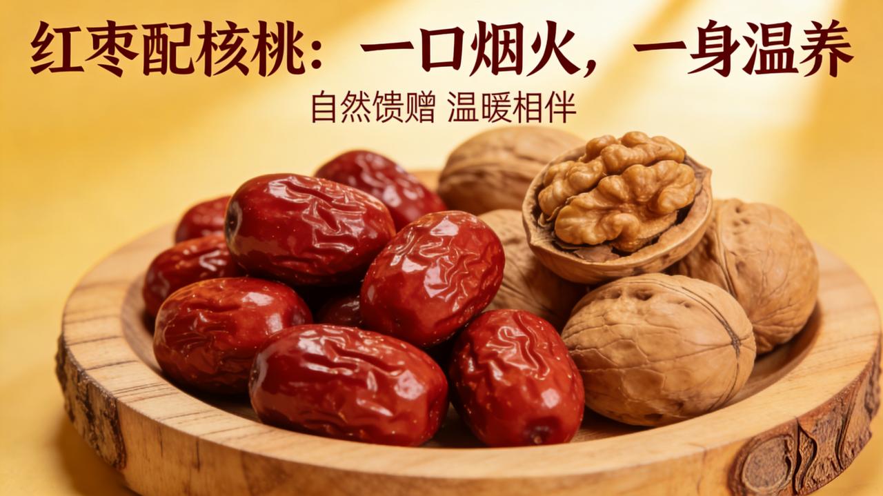 这搭配实在妙。一个甘温,一个微热;一个补血,一个益精;一个入脾,一个归肾。脾是后天之本,肾是先天之根,这一红一褐的两样小东西,竟把人的根基都顾全了。难怪民间有俗语:“日食三枣,长生不老;常吃核桃,返老还童。”说得夸张了些,但那份朴素的愿望,倒是真的。