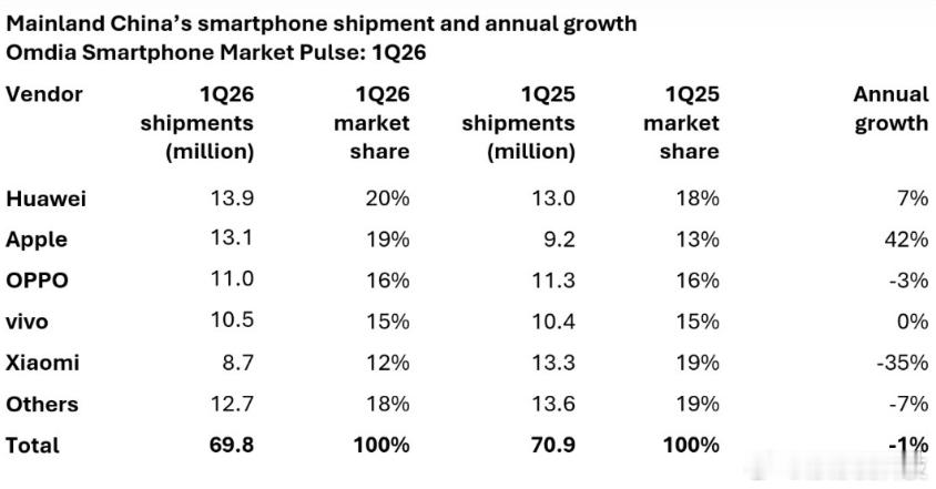 专业数据分析机构Omdia给出的数据显示,今年第一季度,华为以1390万台的出货量排名第一,拿下了Q1的销冠。其他国产品牌如OPPO、vivo、小米等也是稳定发挥,出货量整体保持了稳定。华为能拿下Q1冠军宝座,从单品销量看,感觉畅享90系列贡献了不少的份额