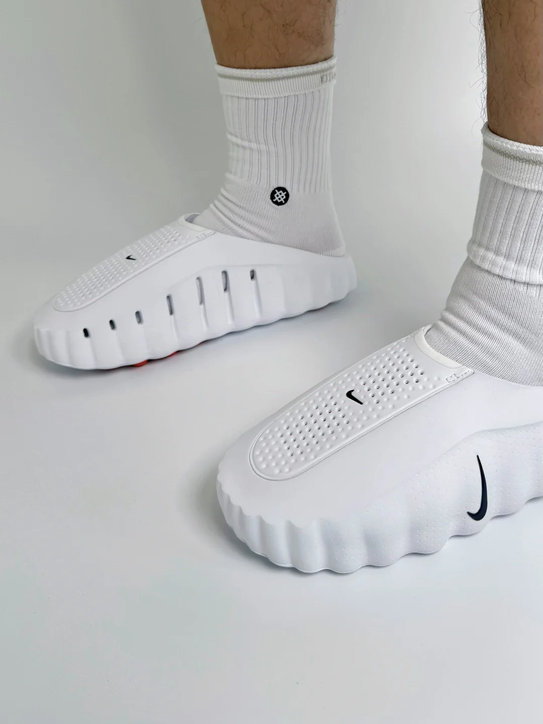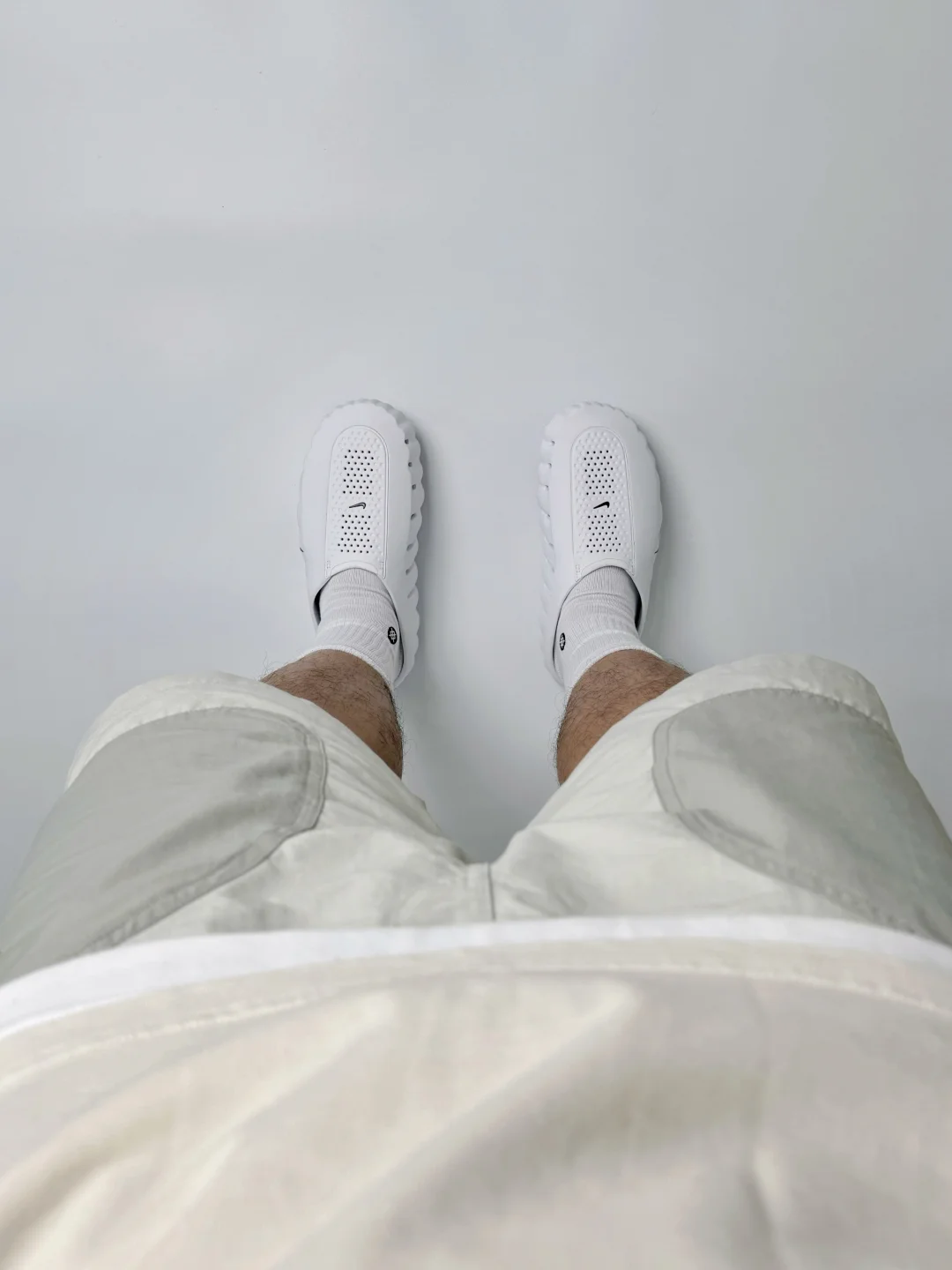 3. 能否涉水:能但又不太能;大面积橡胶材质不怕水,但是鞋垫与脚面小swoosh的拼接面仍然会吸水,所以小雨没啥问题,但不能穿着洗澡或者浸泡