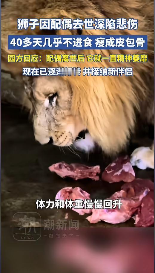 信息来源:《狮子因配偶去世,四十多天未正常进食,瘦得只剩皮包骨》潮新闻