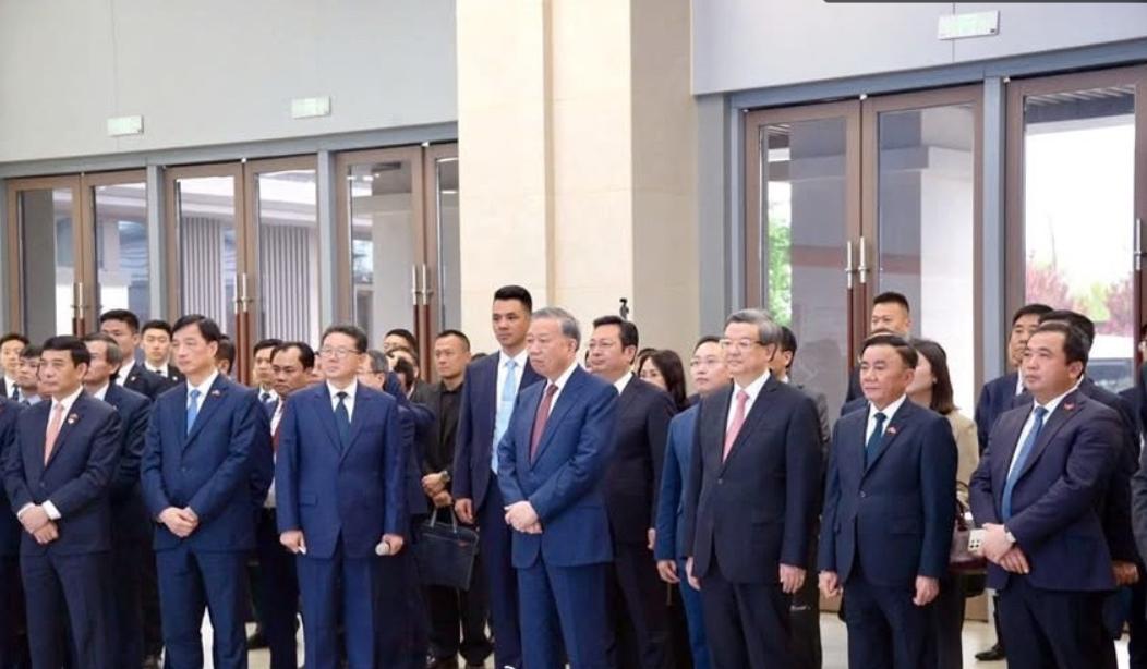 4月14日苏林率越南访问团参访雄安新区,却没有看到吴芳璃夫人的身影!他们一行人是乘坐高铁抵达的,在雄安新区现场,站在第一排的都是清一色的男士(女接待员除外),并没有苏林夫人。