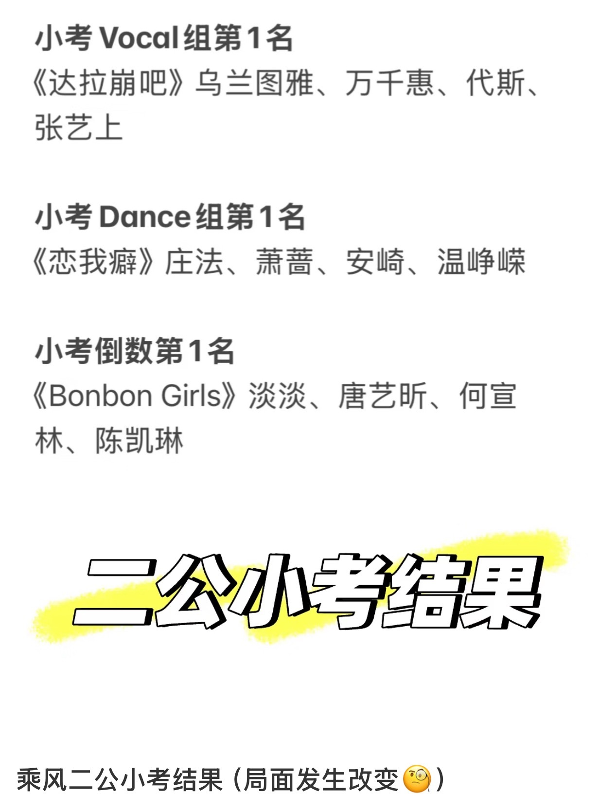 浪姐二公小考结果出来了,淡淡、唐艺昕、何宣林、陈凯琳组倒数第一……..评论区有人