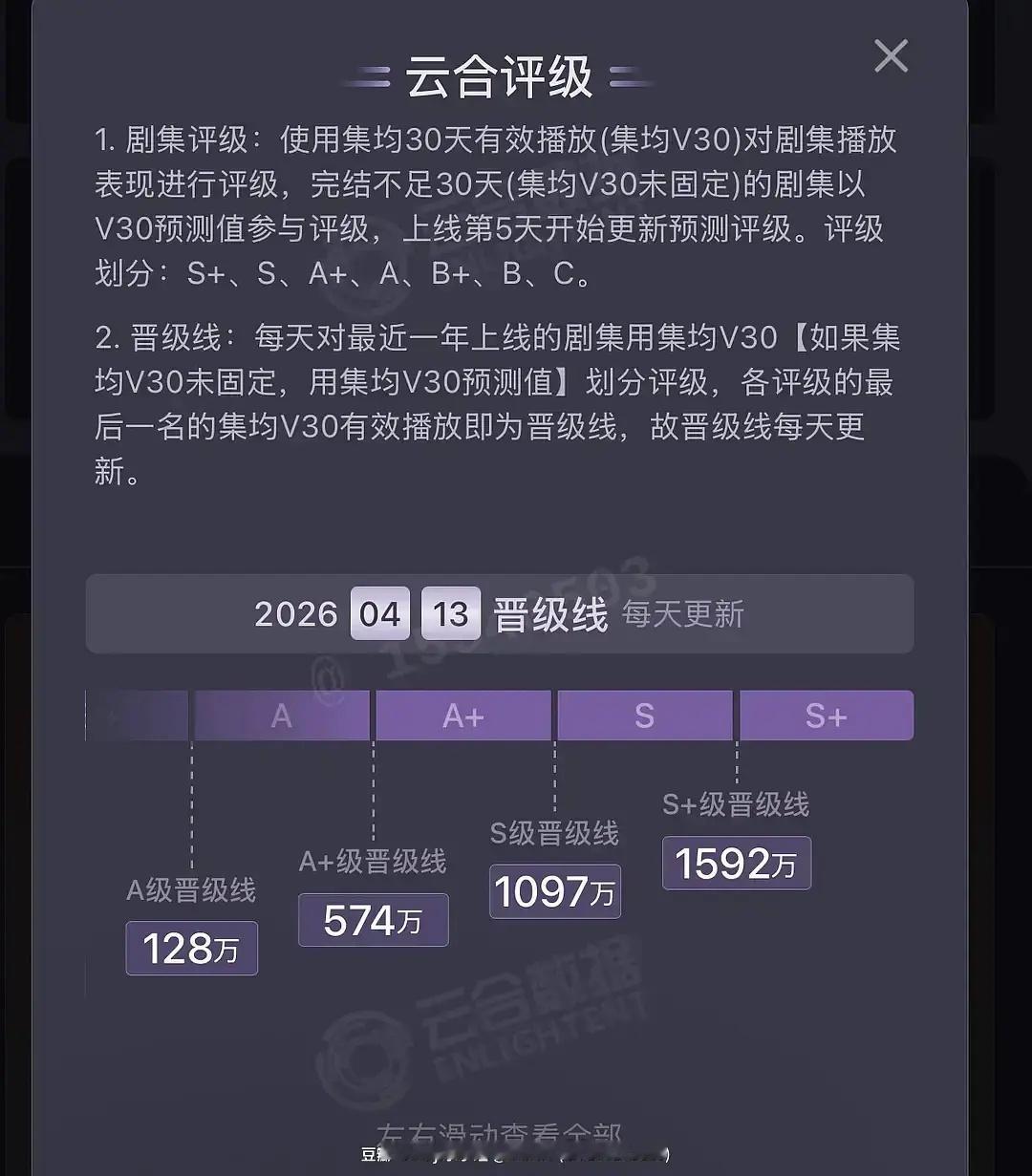 冰湖重生云合评级降到A了,这可是鹅桃联播,还有25集没播,就这越播越低的趋势等完