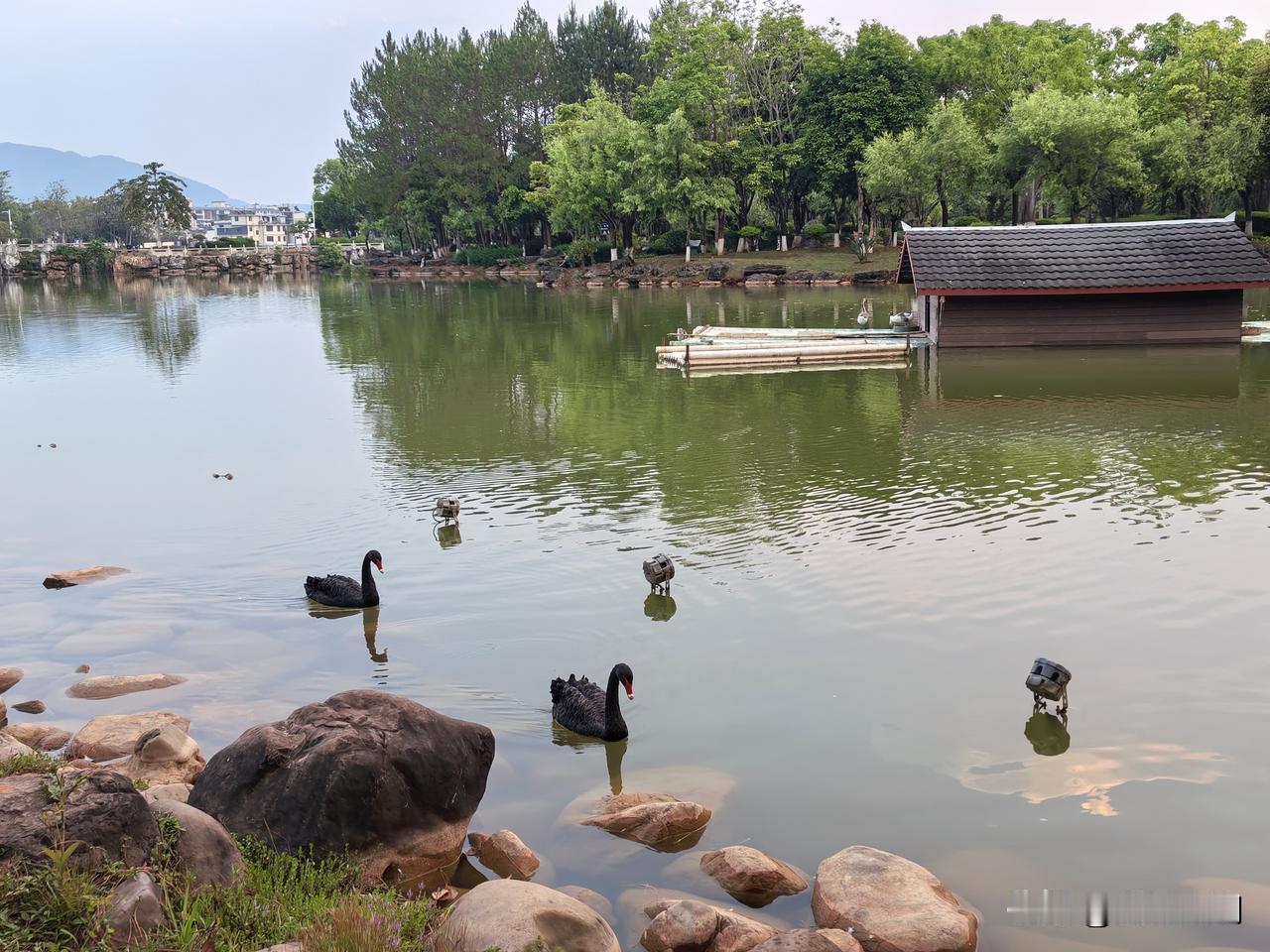 一进公园,最先看到的就是那一大片宽阔的水面,几只天鹅在水上慢悠悠地游着,一点都不怕人,可自在了。湖边种满了香樟、榕树,还有木棉、桂花、三角梅啥的,一年四季都有的看——春天木棉花开得红彤彤的,秋天桂花香飘满公园,三角梅更是常年开得热热闹闹的。