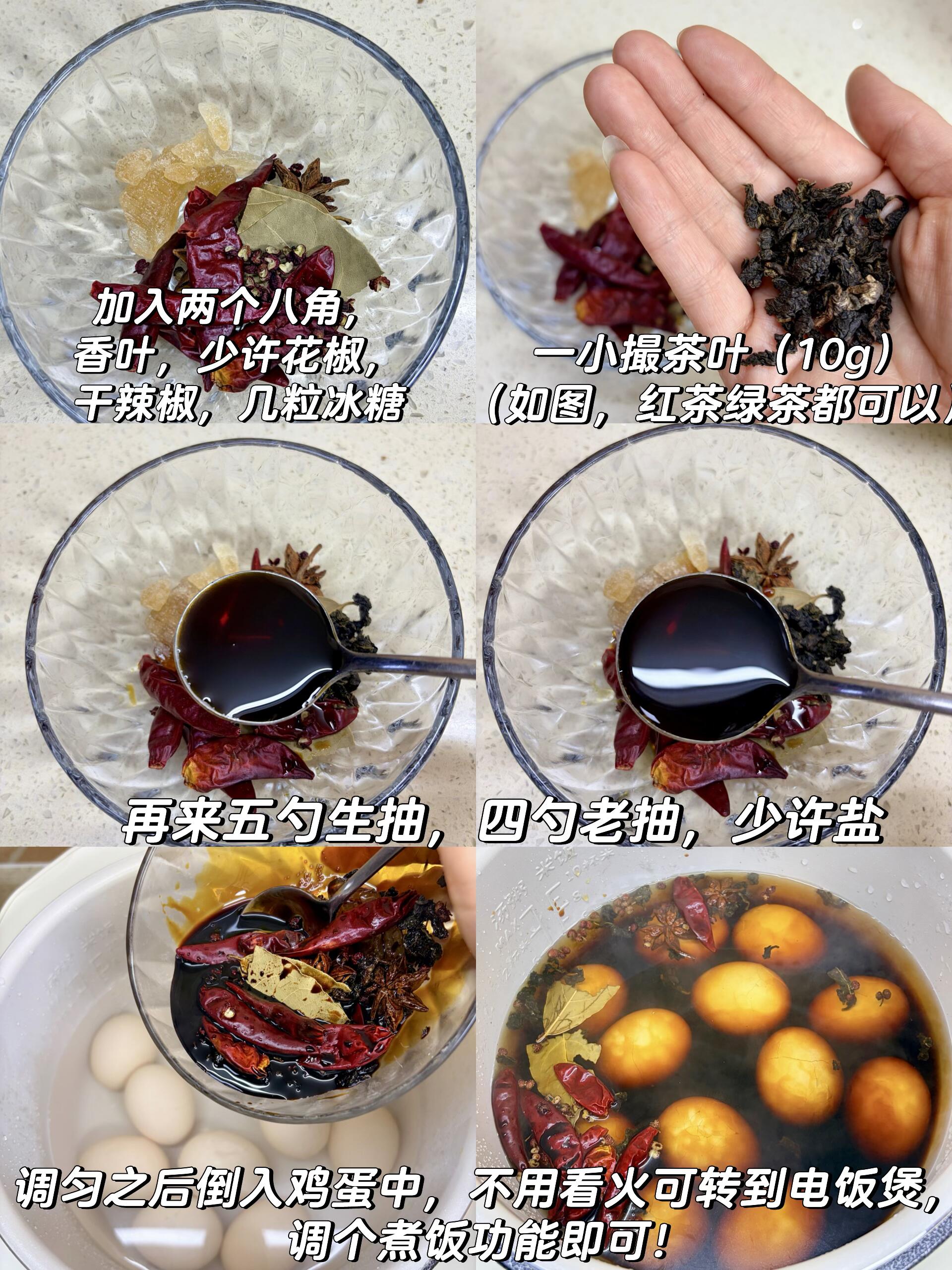 ✔️ 图中这个配方,大概能卤12个鸡蛋,大家可以根据自己要做的数量,按需增减调料和清水,比例不变就好。