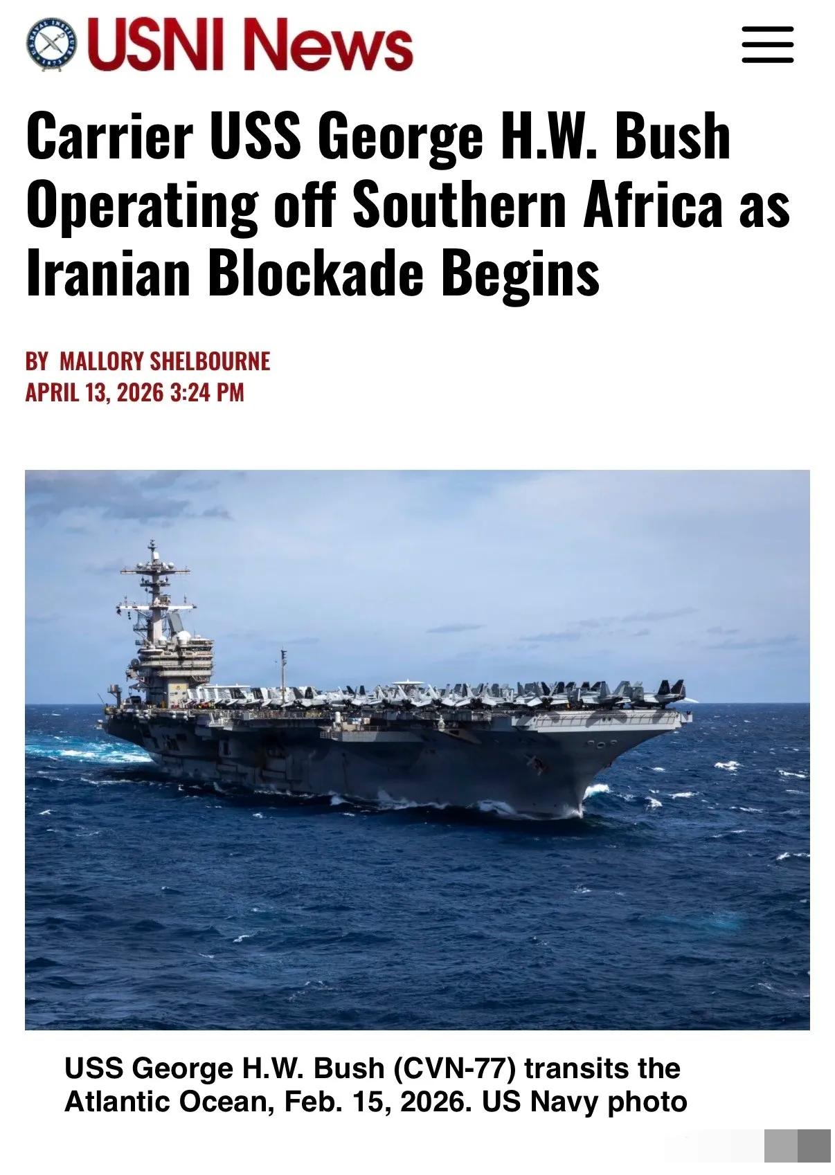 与“福特”号此前仅用5天横跨大西洋的高效部署形成鲜明对比,“布什”号目前仍在大西洋靠近南非的海域缓慢推进,预计还需十多天才能抵达中东。这不仅意味着燃料、后勤和舰员疲劳度的巨大消耗,也反映出美军在中东航道安全上的被动局面。