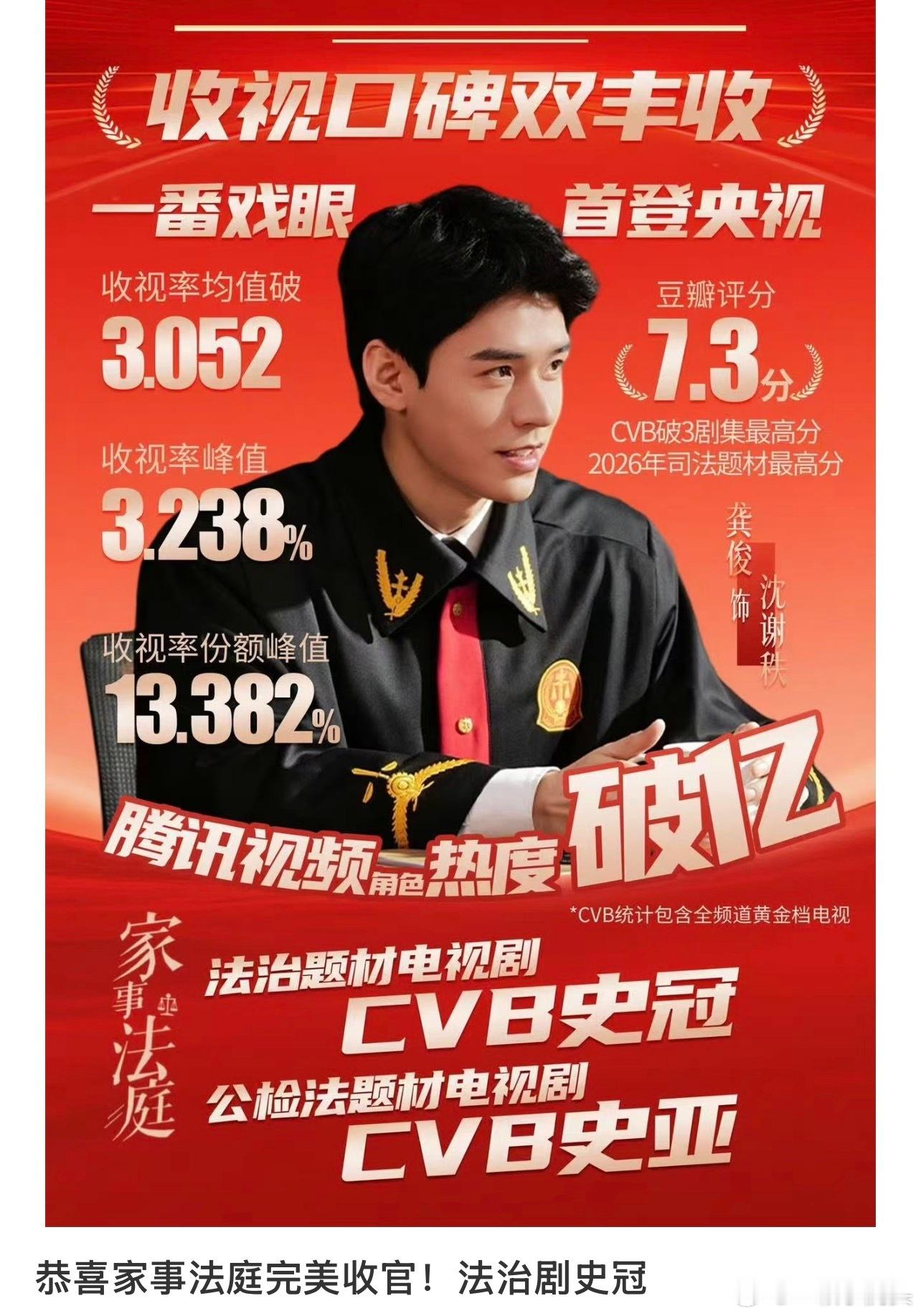 让我们恭喜龚俊《家事法庭》cvb破3,没有老戏骨,单抗一番实绩!收视口碑双丰收👏