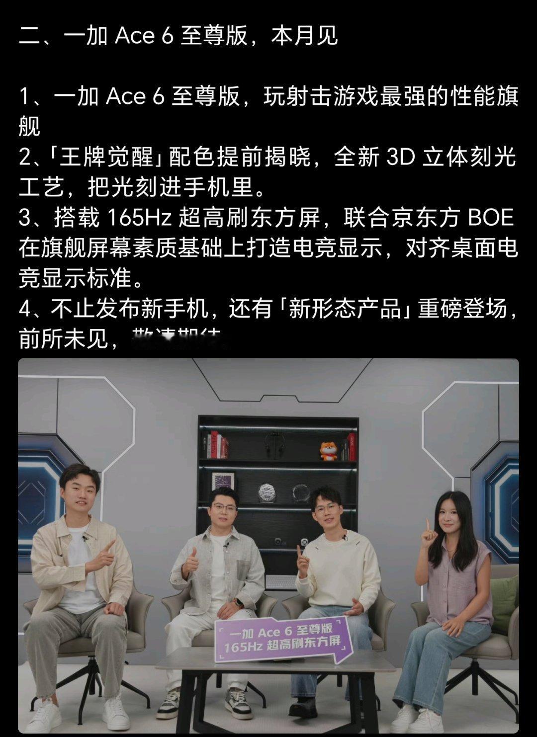 至尊版本月会登场。但也还不止。“新形态产品”也预告了。大概率是前几天网传的,掌机产品?不知道为啥,我总有一种感觉,一加要把手机和掌机做一个,融合的产品。毕竟深耕性能游戏,也挺合理的,如果真的能有的话。