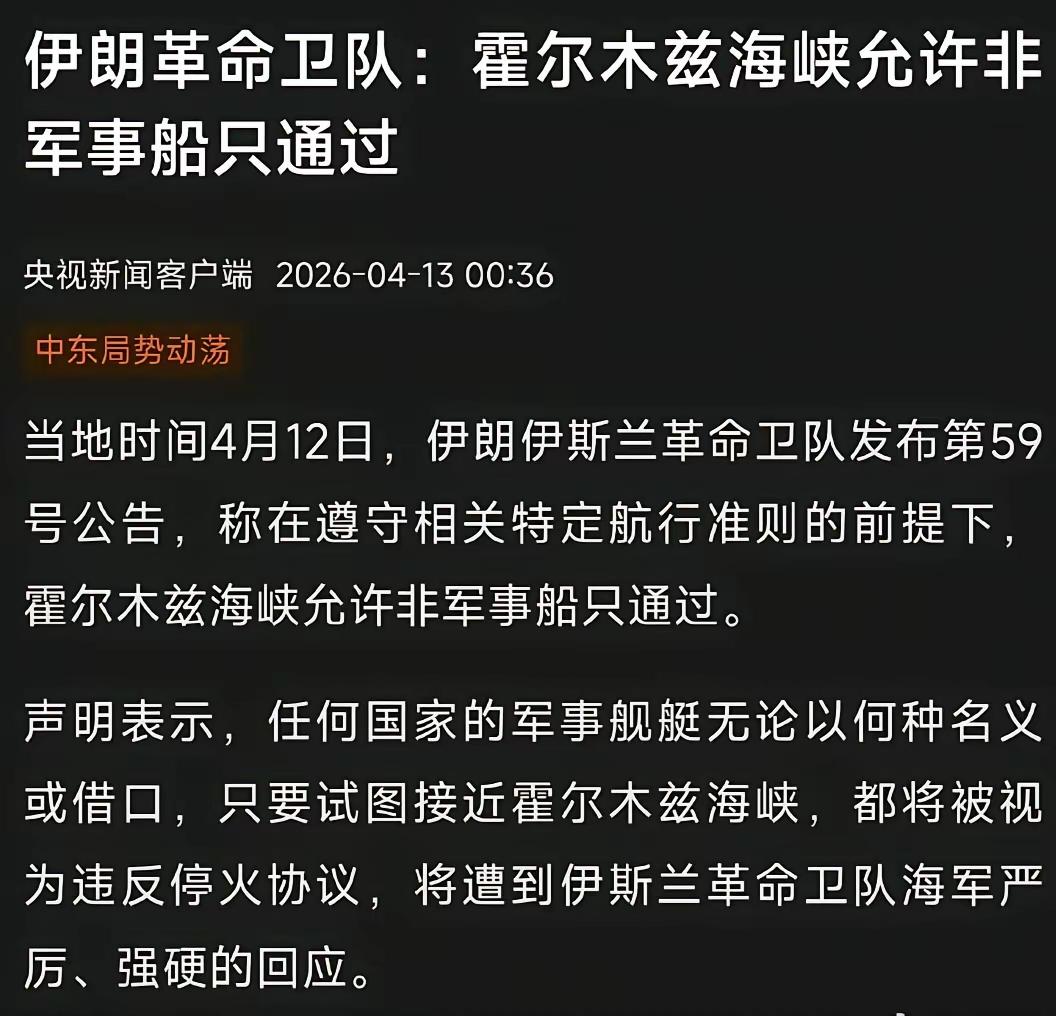 伊朗反将一军,霍尔木兹允许非军事船只通过。