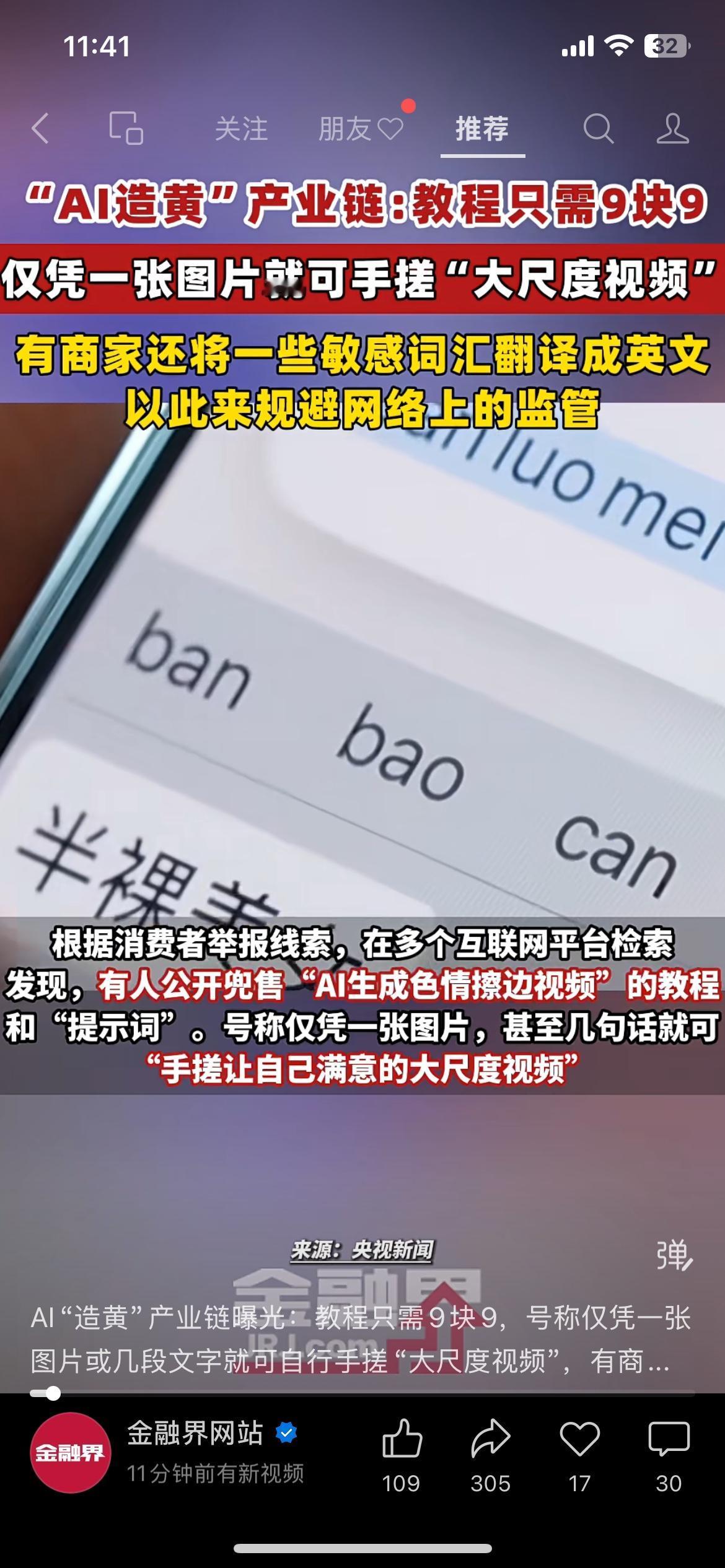 央视曝光了一条藏在暗处的黑色产业链,有人用9.9元的低价售卖教程,靠一张图片就能生成违规内容,还专门用各种手段躲避平台监管。这种行为不仅严重违法,还会侵害很多人的肖像权和隐私,危害特别大。大家平时刷到类似内容一定要提高警惕,不要好奇点击,发现可疑信息及时举报。