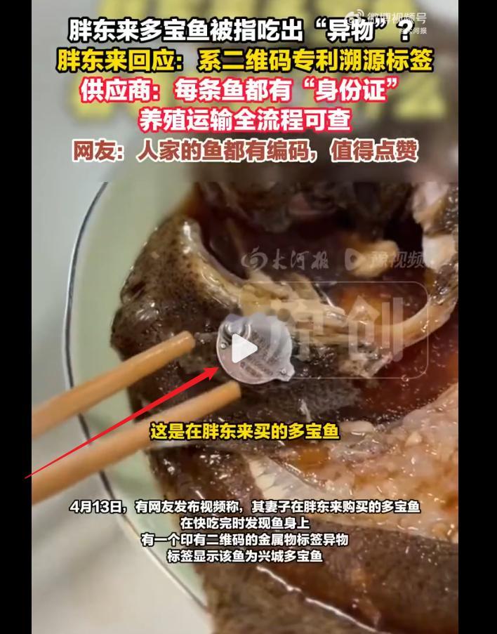 胖东来多宝鱼被指吃出溯源标签 视频里面显示,这个标签就在鱼身外表,食客为什么煮鱼烹饪之前,没有去除呢?胖东来回应顾客吃出溯源标签,郑州胖东来最新进展 ,热点观点