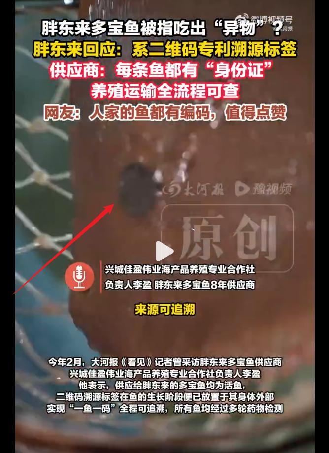 胖东来多宝鱼被指吃出溯源标签 视频里面显示,这个标签就在鱼身外表,食客为什么