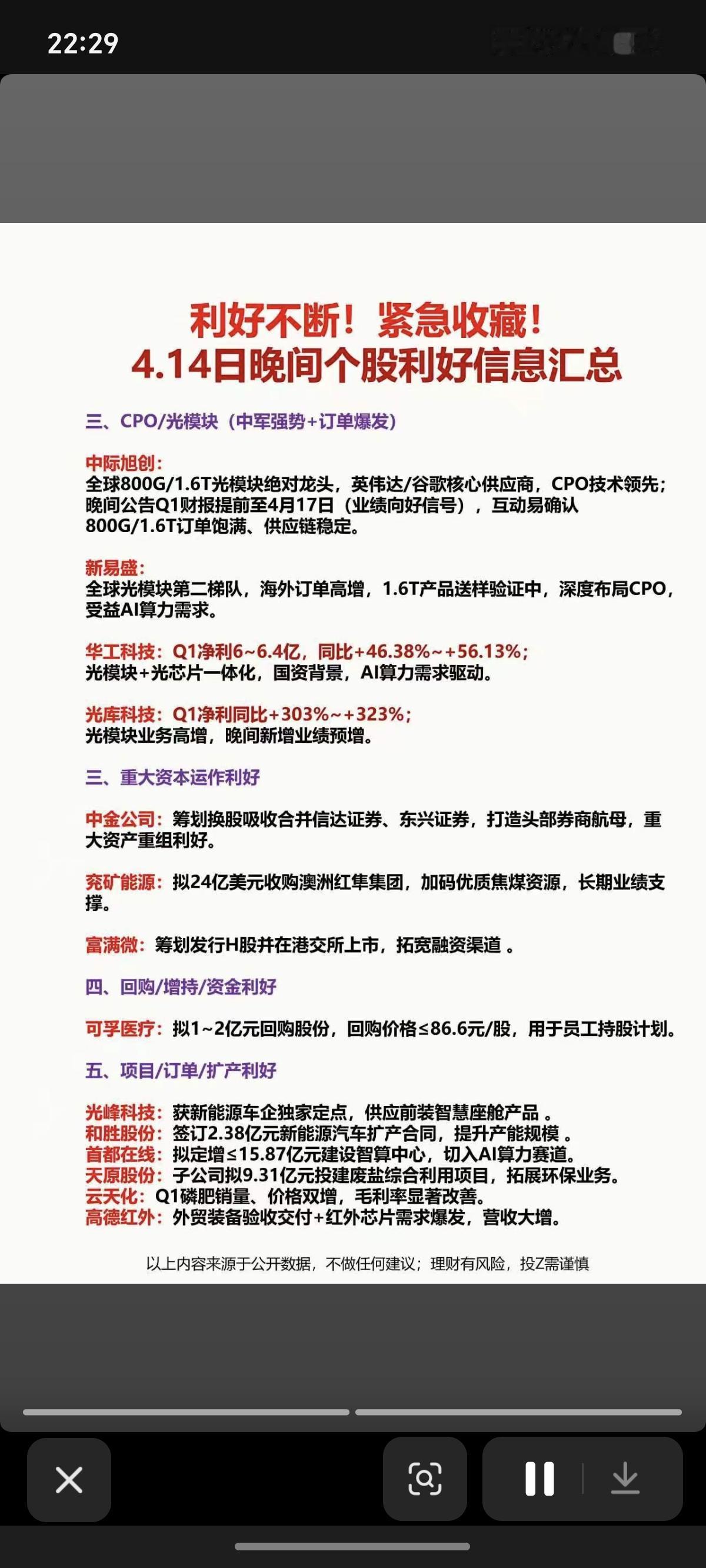 4.15周三 市场利好消息个股汇总!