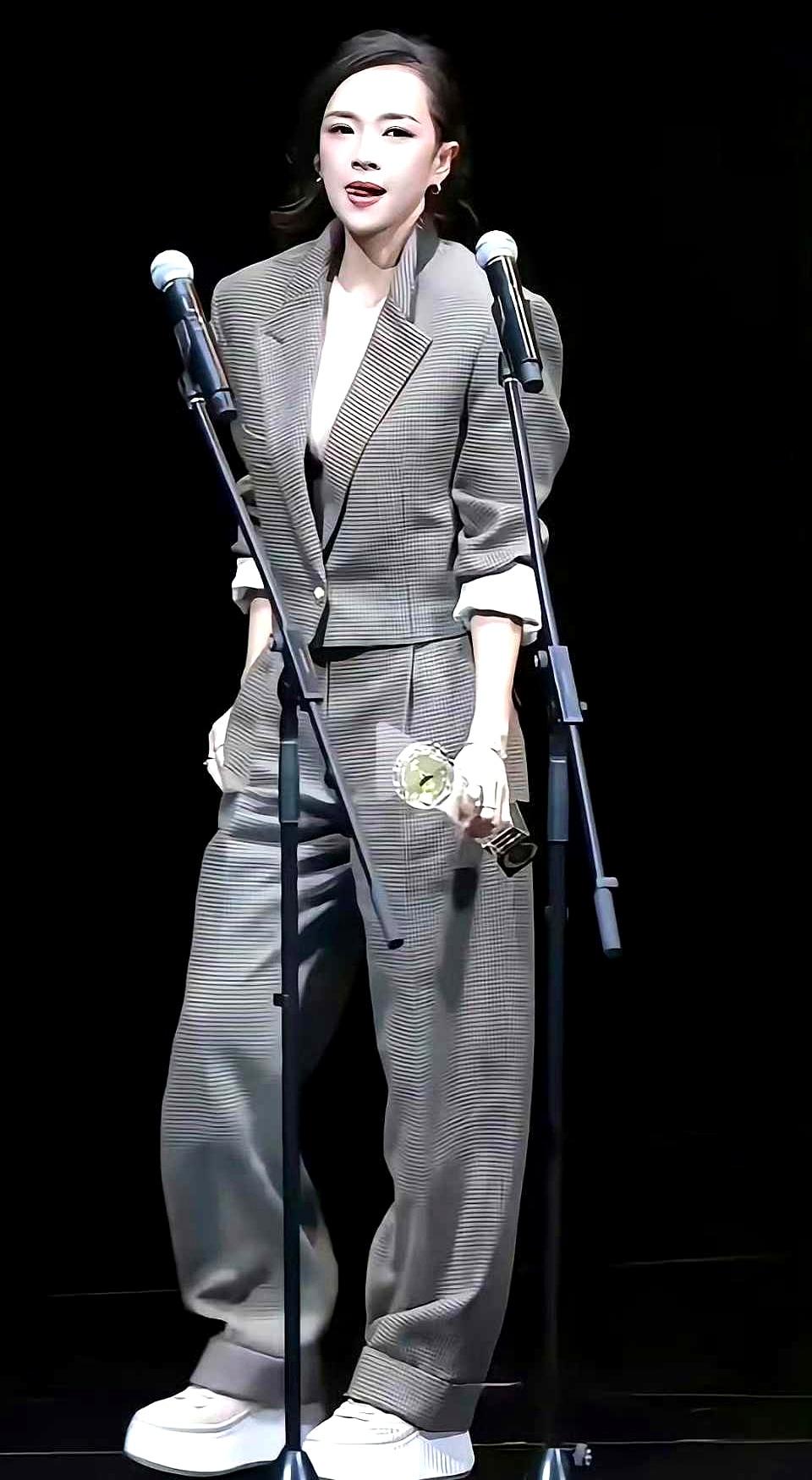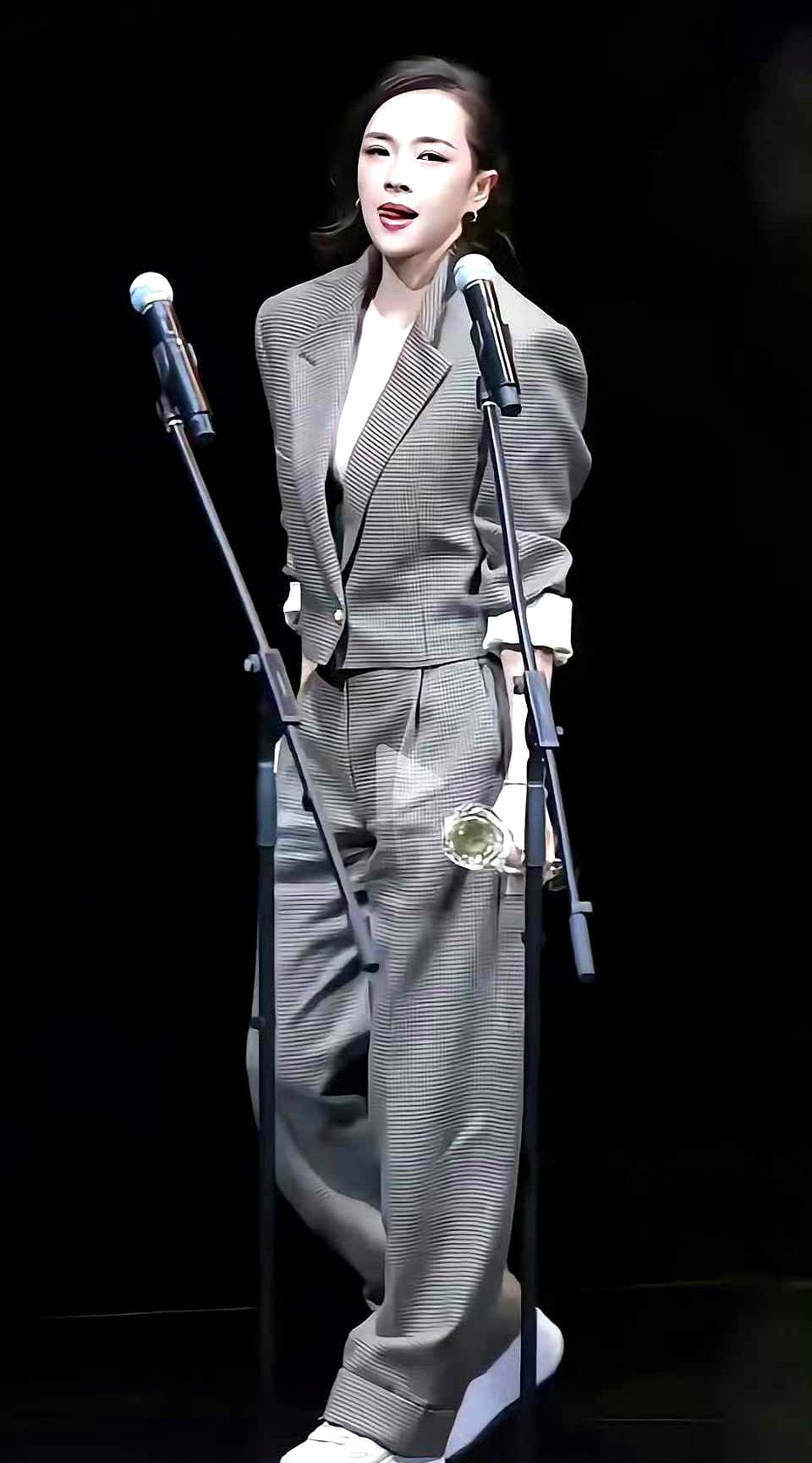 章子怡47岁舞台亮相,休闲套装简约又利落,谁看谁说年轻。