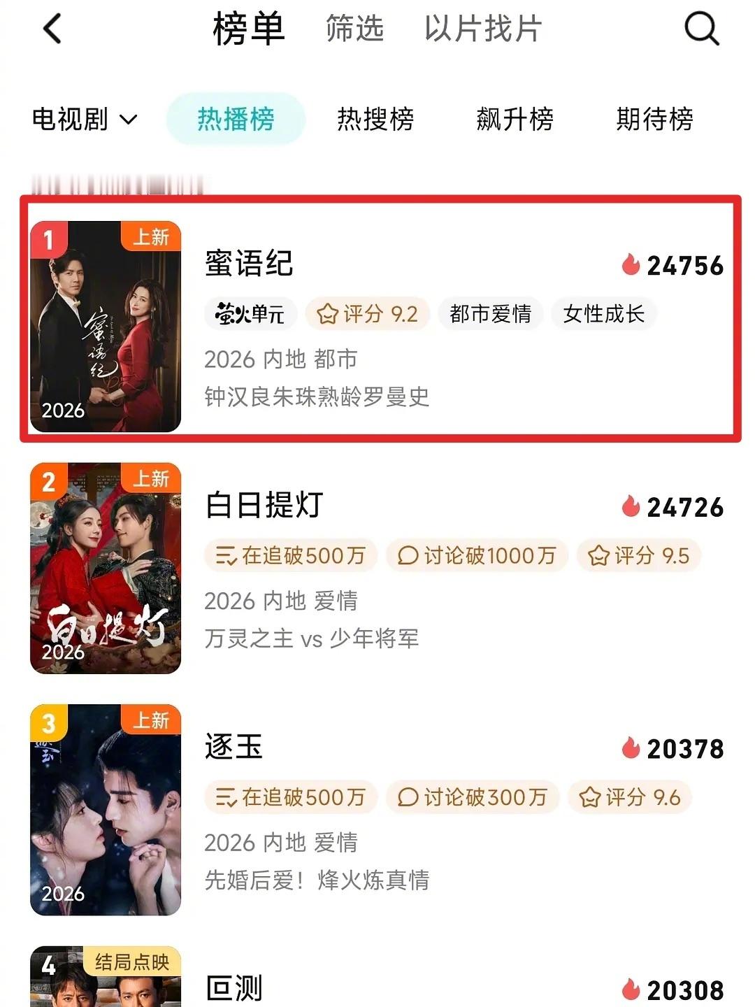 有没有也在追《蜜语纪》的?钟汉良和朱珠这部中偶剧,虽然是下沉老套路,但剧情看着挺上头,节奏也不拖沓。目前网播热度还在往上走,收视也一路向好蜜语纪卫视收视登顶