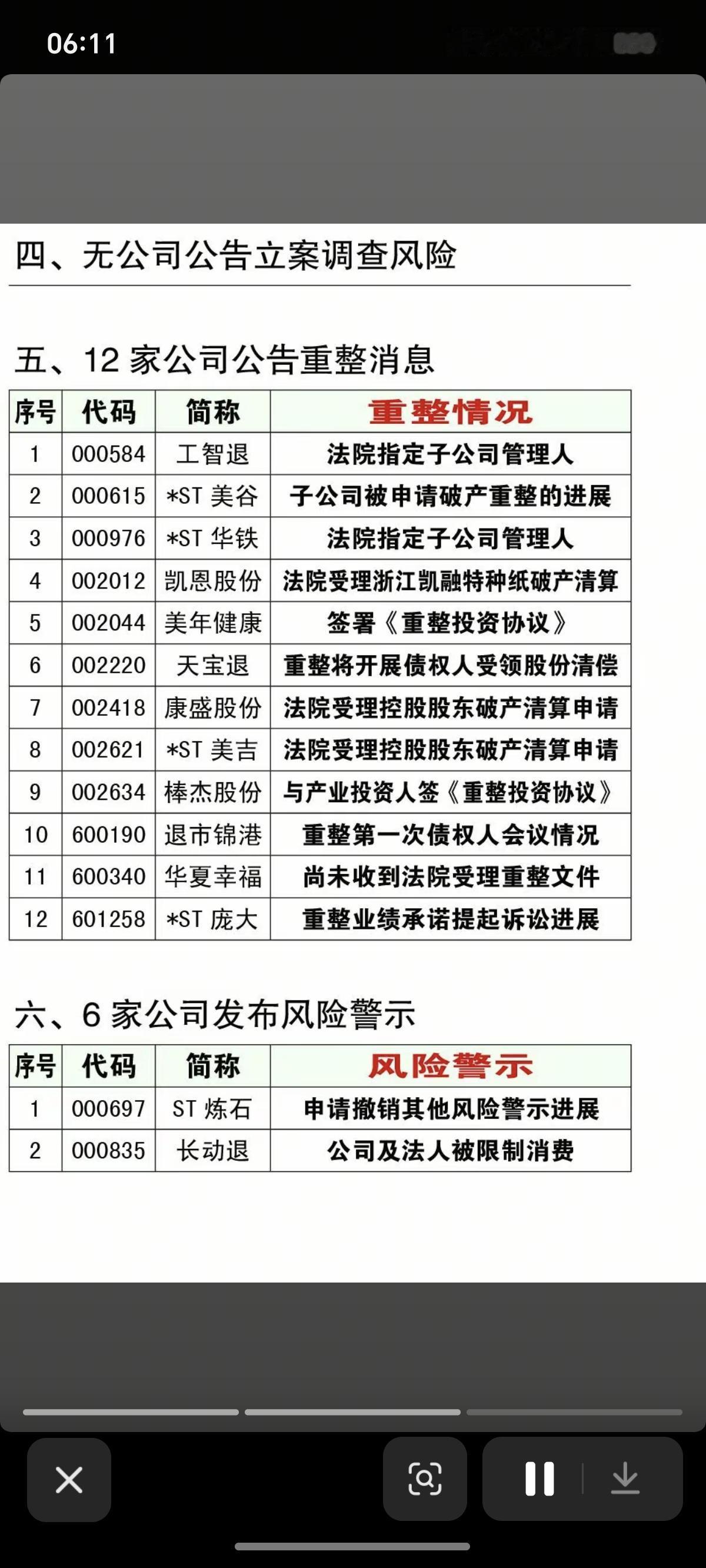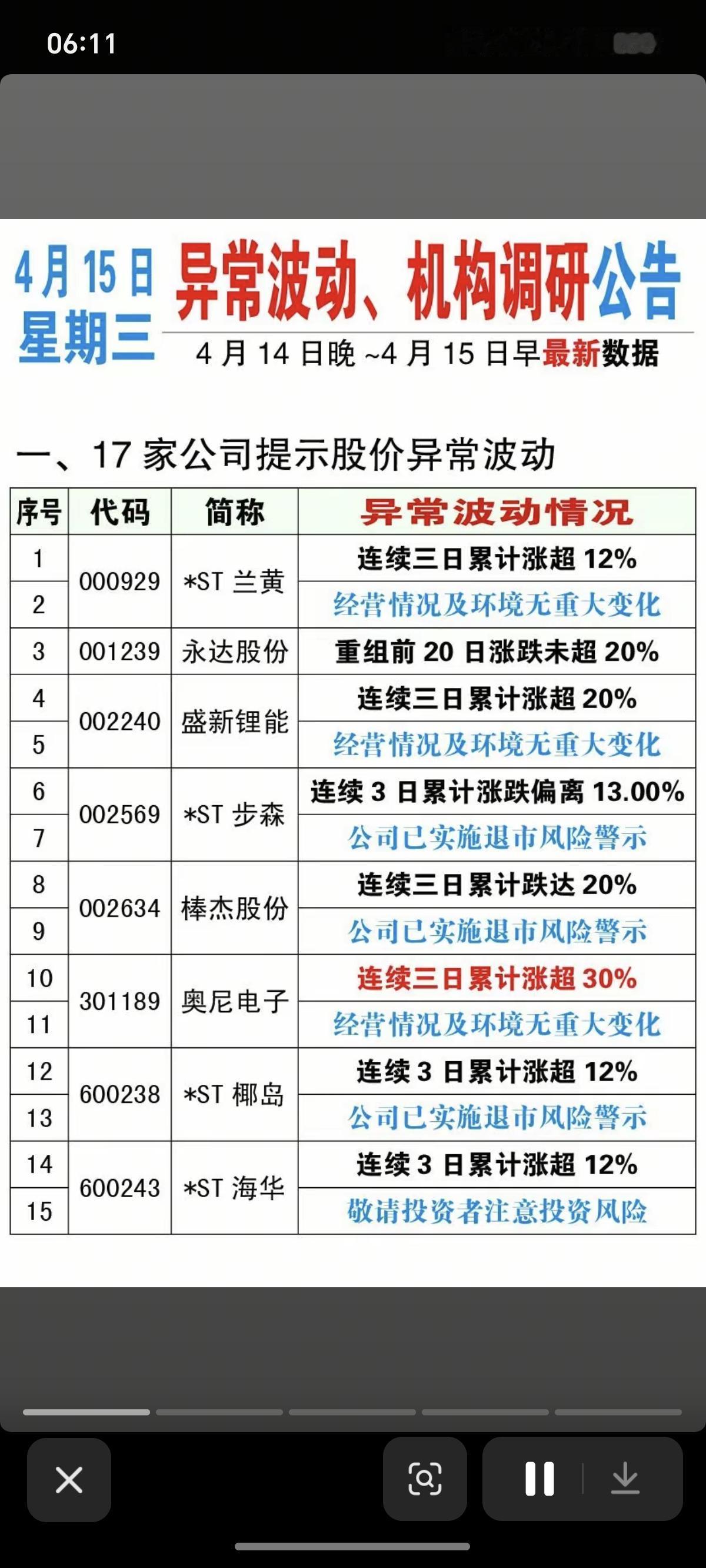4.15周三 上市公司利空消息汇总! 主要涉及:退市风险警示、监管问询函、立