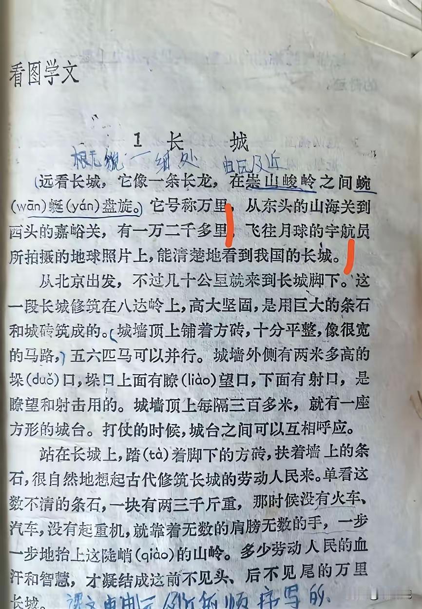 近日,一位网友在头条上发文,称中学课本《长城》一文中“飞往月球的宇航员所拍摄的地球照片上,能清楚地看到我国的长城”是一句杜撰的谎言!