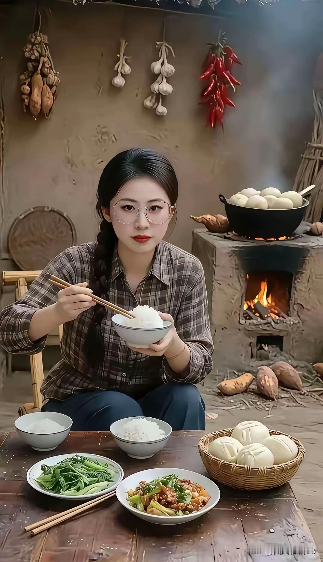 一个人吃那么多,三碗饭,还个馒头