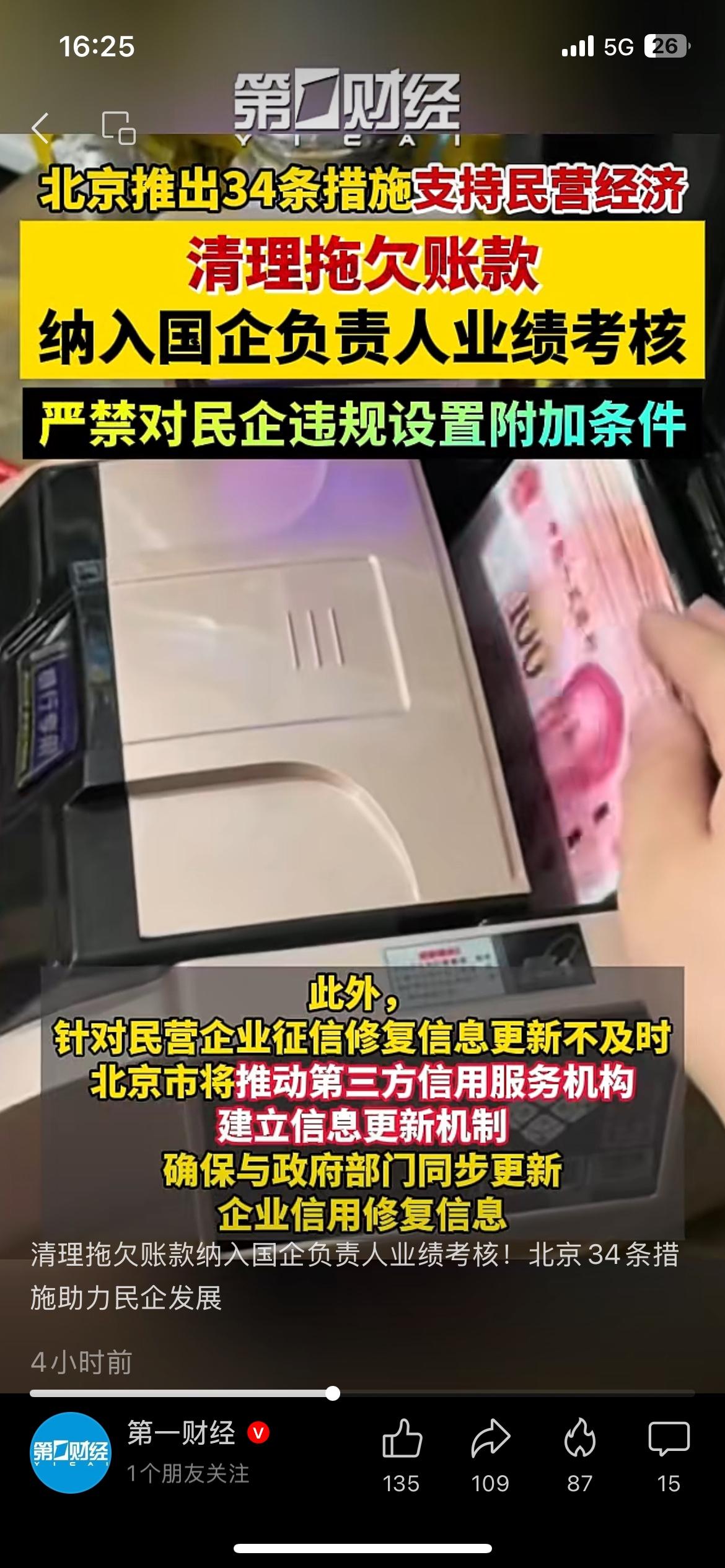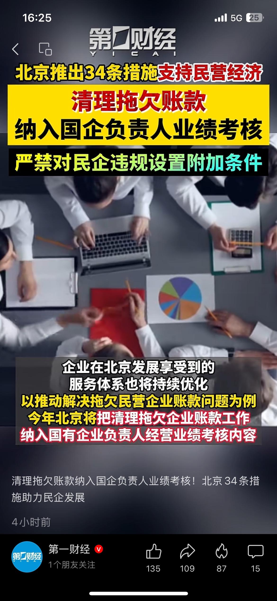 北京34条力挺民营经济,拖欠账款纳入国企考核