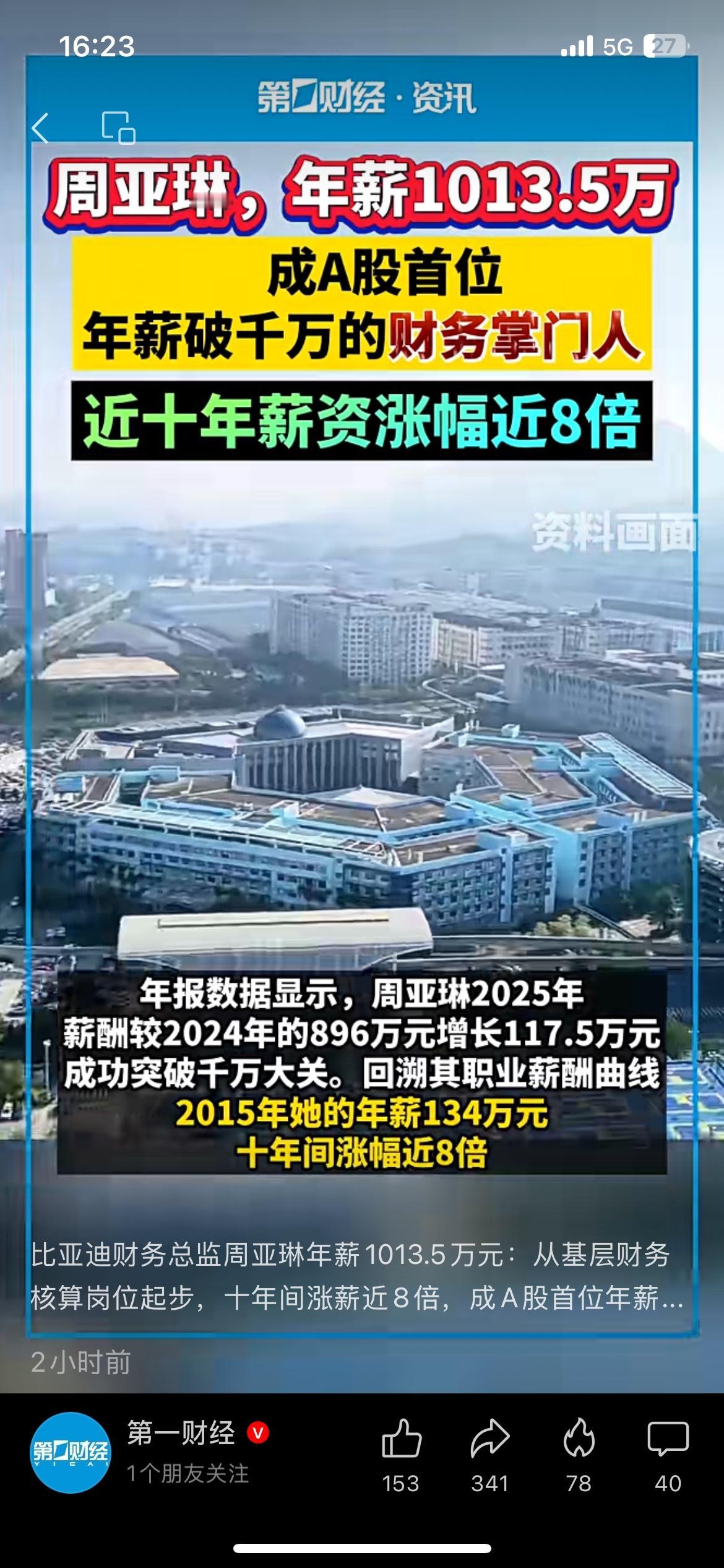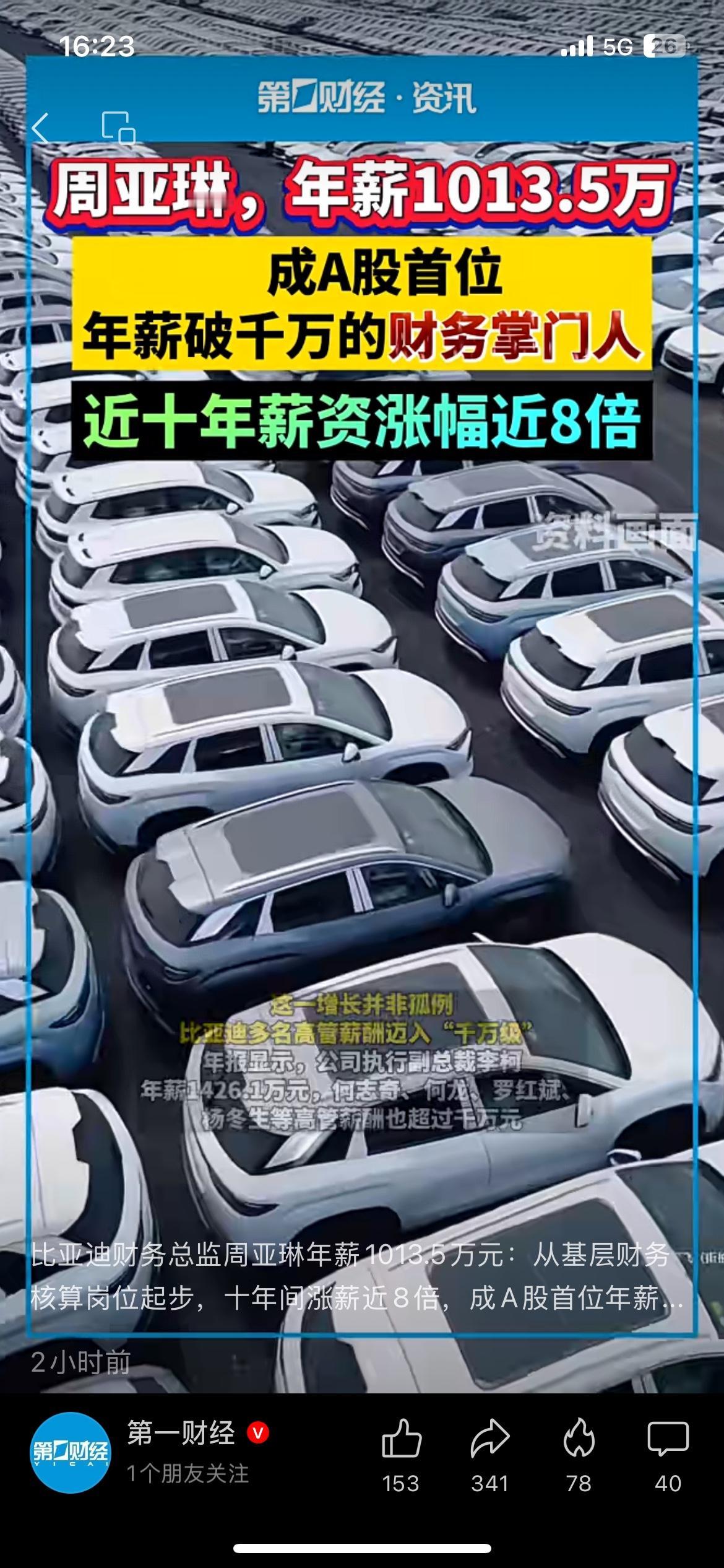 比亚迪财务总监年薪破千万,十年涨近8倍