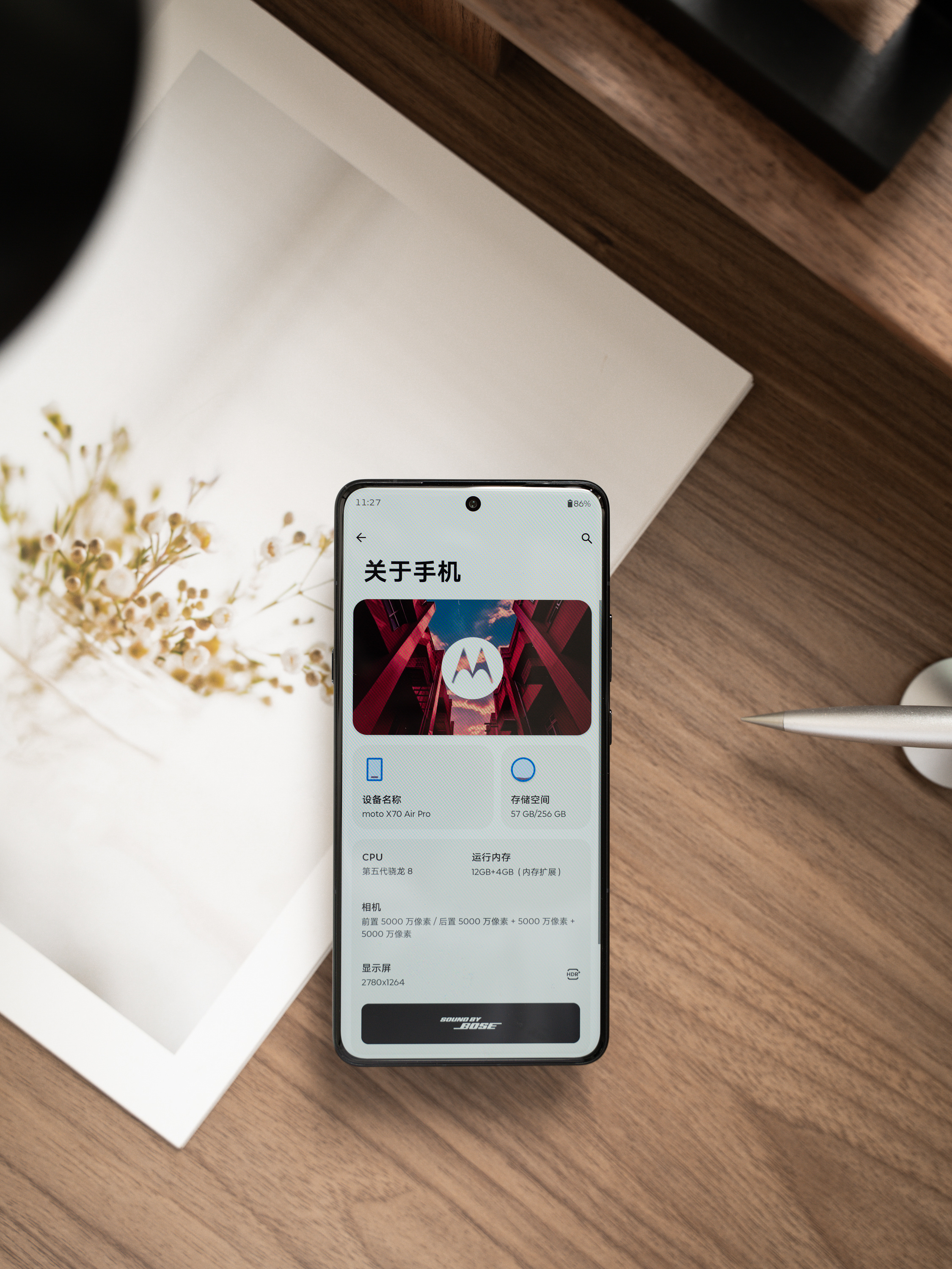 moto X70 Air Pro这名字也是又Air又Pro,在之前的Air风潮里面出来的,不过似乎没什么浪花。配置上其实给得还挺全的,第五代骁龙8和DDR5X Ultra、UFS 4.1啥的,重量186g,厚度6.99mm。拿在手上挺轻薄的。但是并不是想象中那种小,机身尺寸并不小。