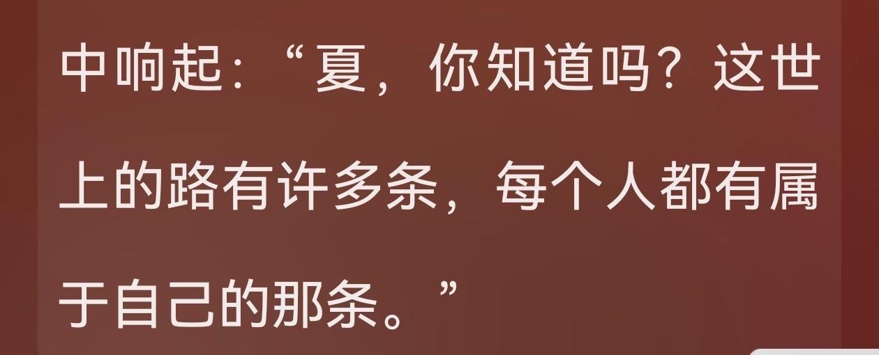 "夏,你知道吗?这世上的路有许多条,每个人都有属于自己的那条。"