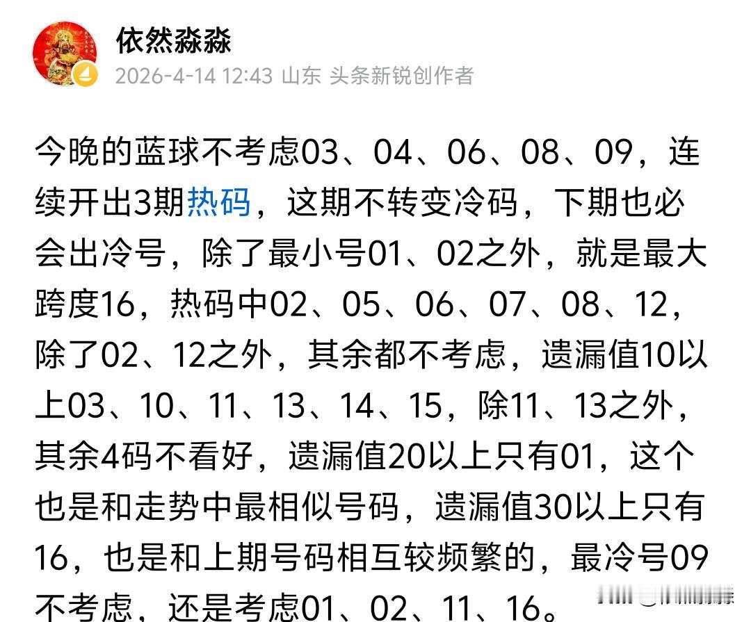 蓝球13是个冷号,遗漏了13期,上期04遗漏值9,4十9二13,看着很简单。