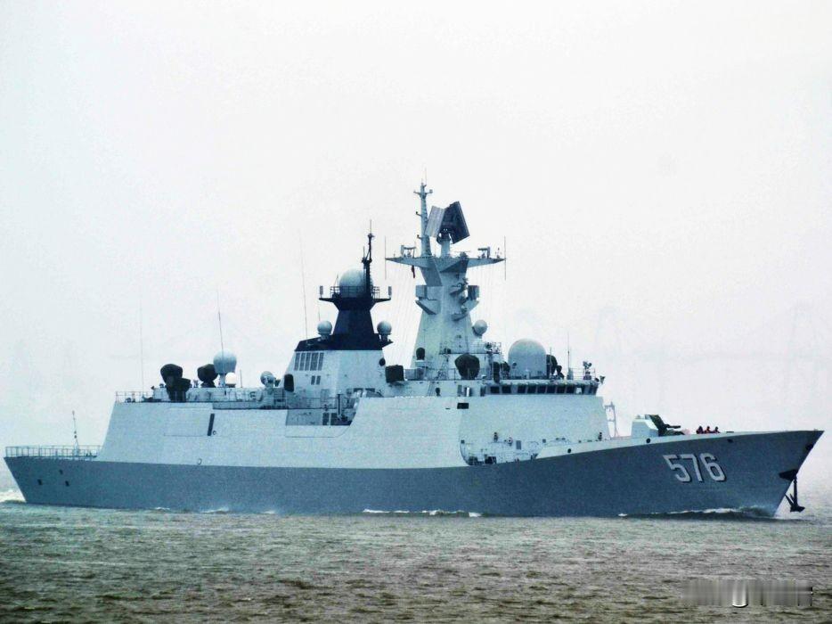 前面4条是巨型装了几十万吨石油的大船,中远珠峰,金海华什么的,后面跟着一个个子上不太起眼,颜色也不起眼,外形上更不起眼的牛夫人——舷号为576的大庆号护卫舰……