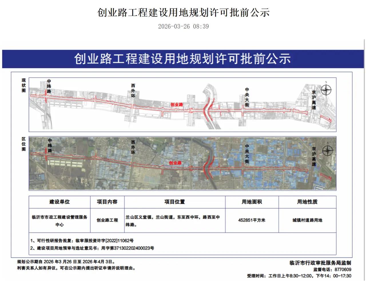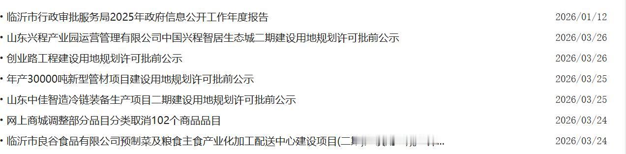 3月底临沂市公示了一大批建设工程,包括:兴程智居生态城二期、兰山区创业路、年产3