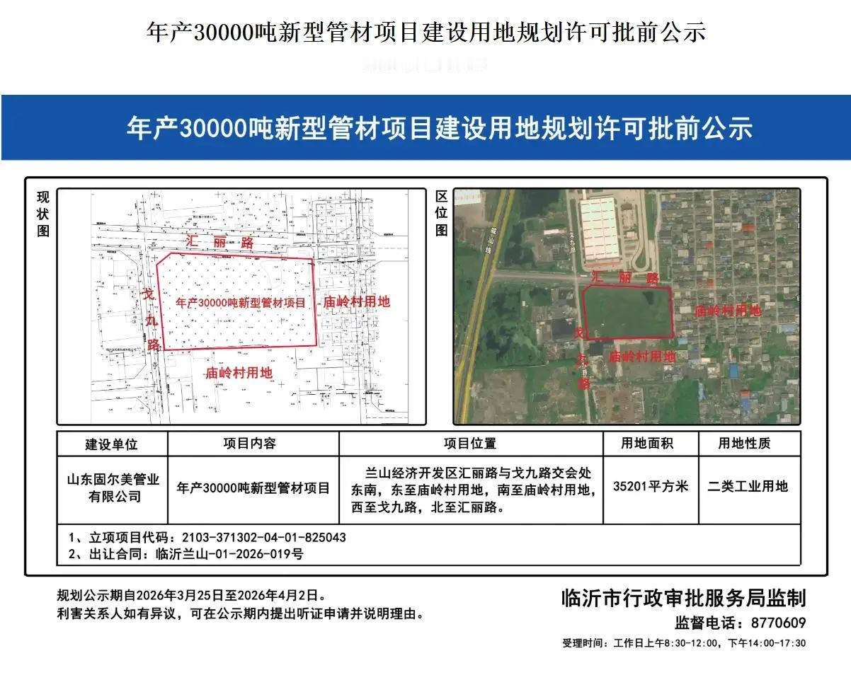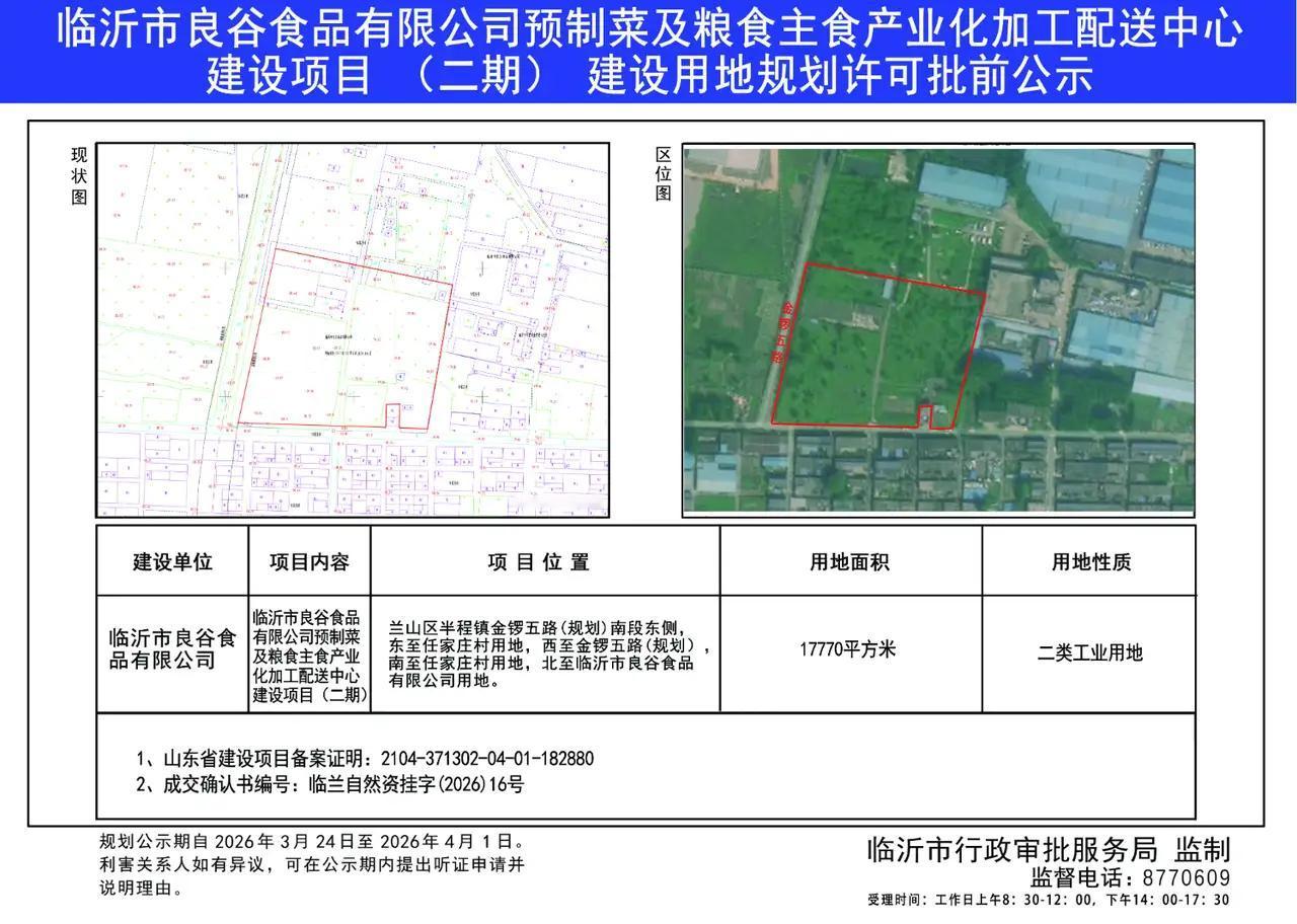 3月底临沂市公示了一大批建设工程,包括:兴程智居生态城二期、兰山区创业路、年产30000吨新型管材项目、中佳智造冷链设备生产项目二期、良谷食品有限公司预制菜及粮食主食产业化加工配送中心。